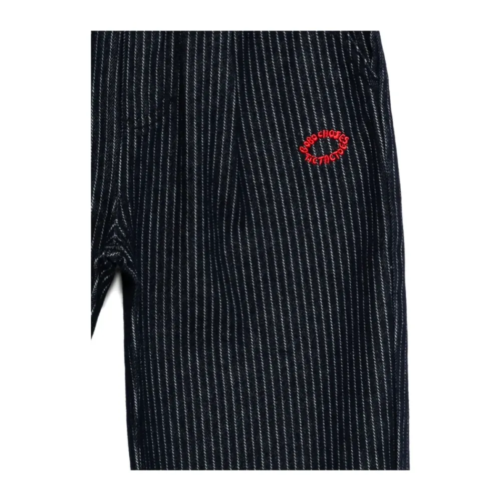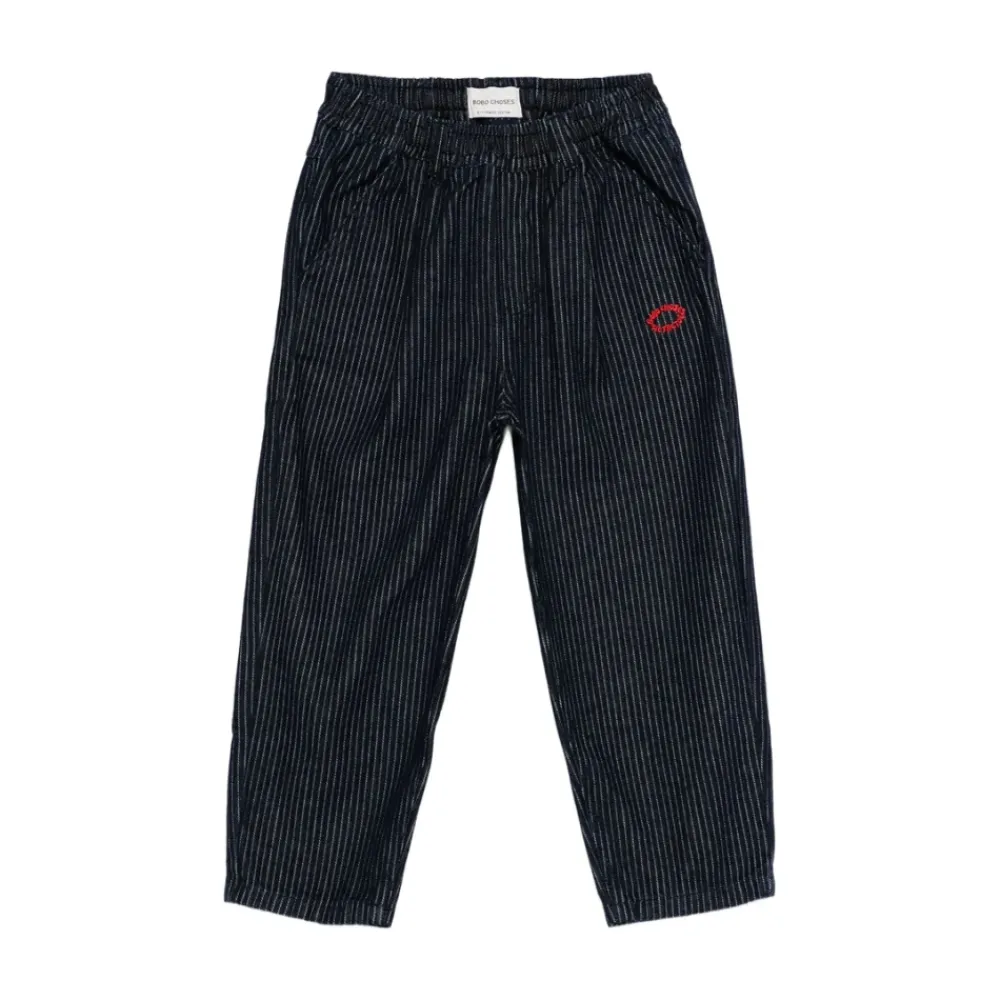 Bobo Choses donkerblauwe broek met elastische tailleband, geborduurd logo en zijzakken voor jongens.