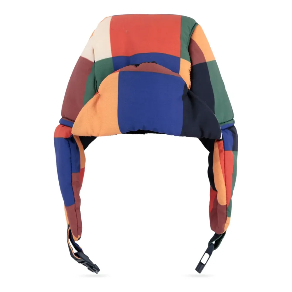 GEÏSOLEERDE HOED MET OORFLAPPEN van Bobo Choses is het toonbeeld van modern design gecombineerd met de verbeelding van een kind. De klassieke, ruime snit met verlengde oorflappen biedt harmonieuze bescherming tegen de kou, terwijl de kinband zorgt voor een perfecte pasvorm en comfort in elke situatie. De unieke esthetiek wordt gekenmerkt door een geometrisch mozaïek van grote, kleurrijke rechthoeken en vierkanten, die het oog vangt en vreugdevol spel inspireert. De zichtbare gewatteerde textuur, robuuste isolatie, evenals de gladde, donkere binnenvoering zijn het bewijs van het gebruik van hoogwaardig polyamide en polyester. Het gehele stuk is afgewerkt met een subtiel, geborduurd “Bobo Choses”-logo, een delicaat symbool van uniciteit. WAAROM IS HET DE MOEITE WAARD OM DIT PRODUCT TE KOPEN? * Uitzonderlijke koudebescherming dankzij oorflappen en een kinband * Inspirerend, geometrisch patroon dat creatief spel aanmoedigt * Zorgvuldig geselecteerde, materialen * Merkdetail – subtiel logo dat prestige benadrukt * Een unieke keuze voor de veeleisende