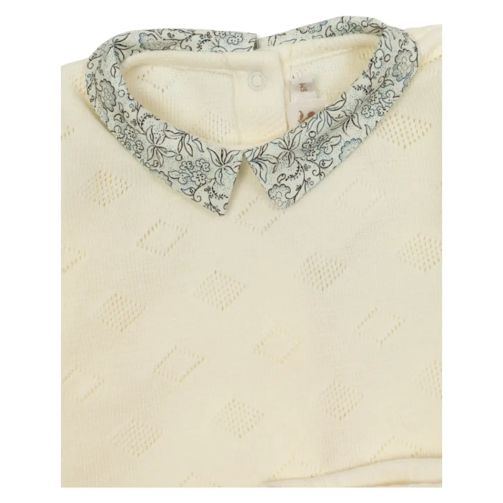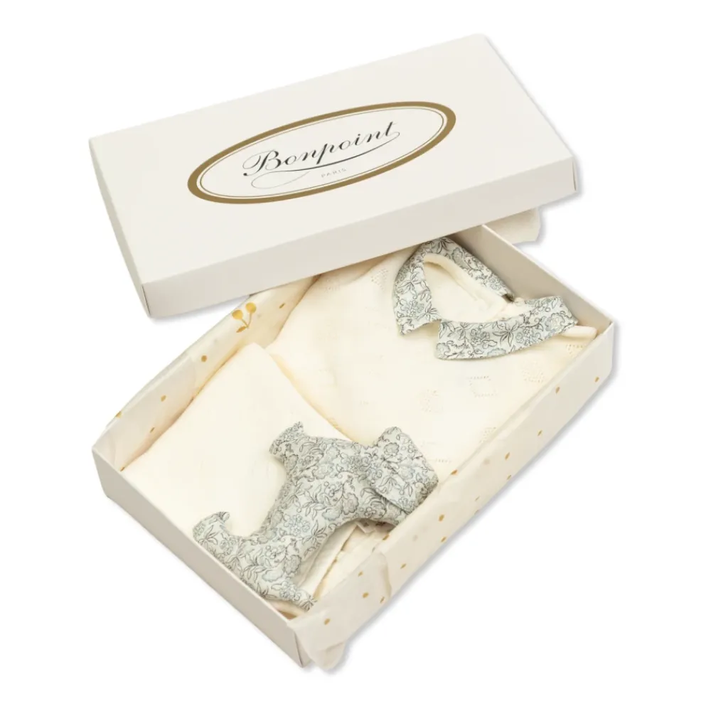 Bonpoint Set: Blouse, Broek en Teddybeer is een klassieke Frans-geïnspireerde outfit met een zachte katoenen blouse, bijpassende broek en een knuffel. De set valt op door de verhoogde diamanttextuur en een contrasterende bloemenkraag voor een verfijnde look. Belangrijkste kenmerken: Beige | Crème | Katoen | Knoopsluiting aan de achterkant van de blouse | Verpakt in een merkgeschenkdoos | Contrasterende bloemenkraag in blauw en grijs | Verhoogde diamanttextuur | Lange mouwen blouse | Recht gesneden broek | Afmetingen & pasvorm: Comfortabele pasvorm | Recht gesneden broek | Samenstelling & onderhoud: 100% katoen