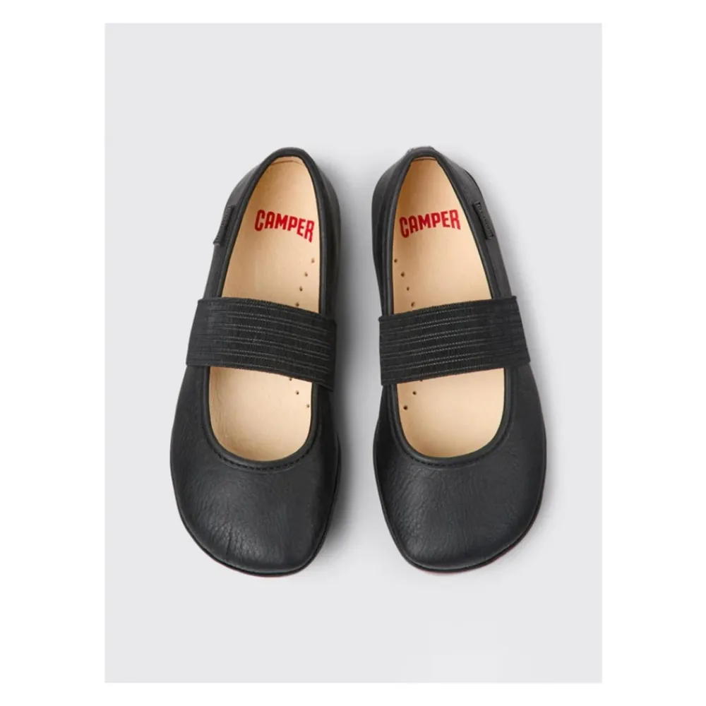 Camper leren ballerina’s om in te glijden zijn eenvoudige, alledaagse platte schoenen ontworpen voor gemakkelijk dragen en comfort. Hun klassieke ballerina-silhouet maakt ze een veelzijdige keuze voor casual en verzorgde looks. Belangrijkste kenmerken: Zwart | Leer | Comfortabele pasvorm | Instapmodel | Klassiek ballerina-silhouet | Eenvoudig, elegant ontwerp | Afmetingen en pasvorm: Comfortabele pasvorm | Samenstelling en verzorging: Leer