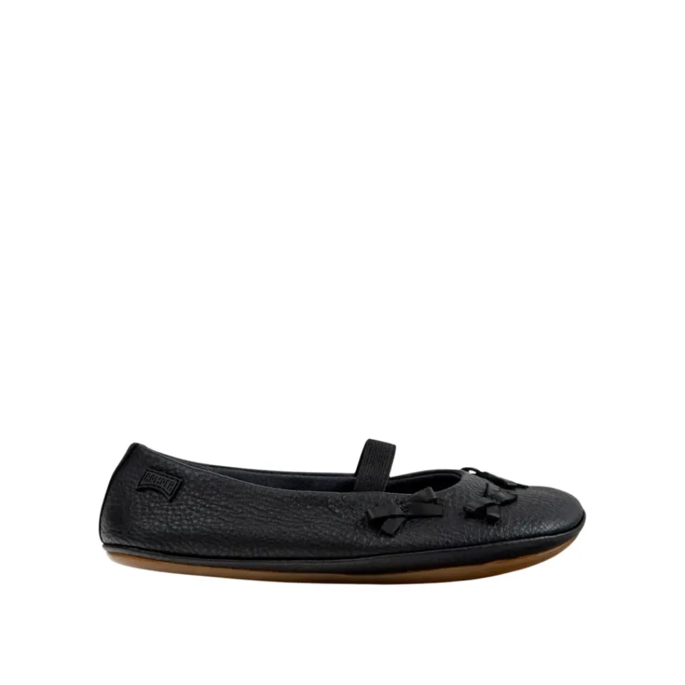 Stap in stijl met deze klassieke Camper ballerina schoenen voor meisjes. Voorzien van een elastische band sluiting voor een goede pasvorm, zijn ze versierd met ornamentdetails voor een vleugje elegantie en flair. Gemaakt van een leren bovenwerk en rubberen zool.