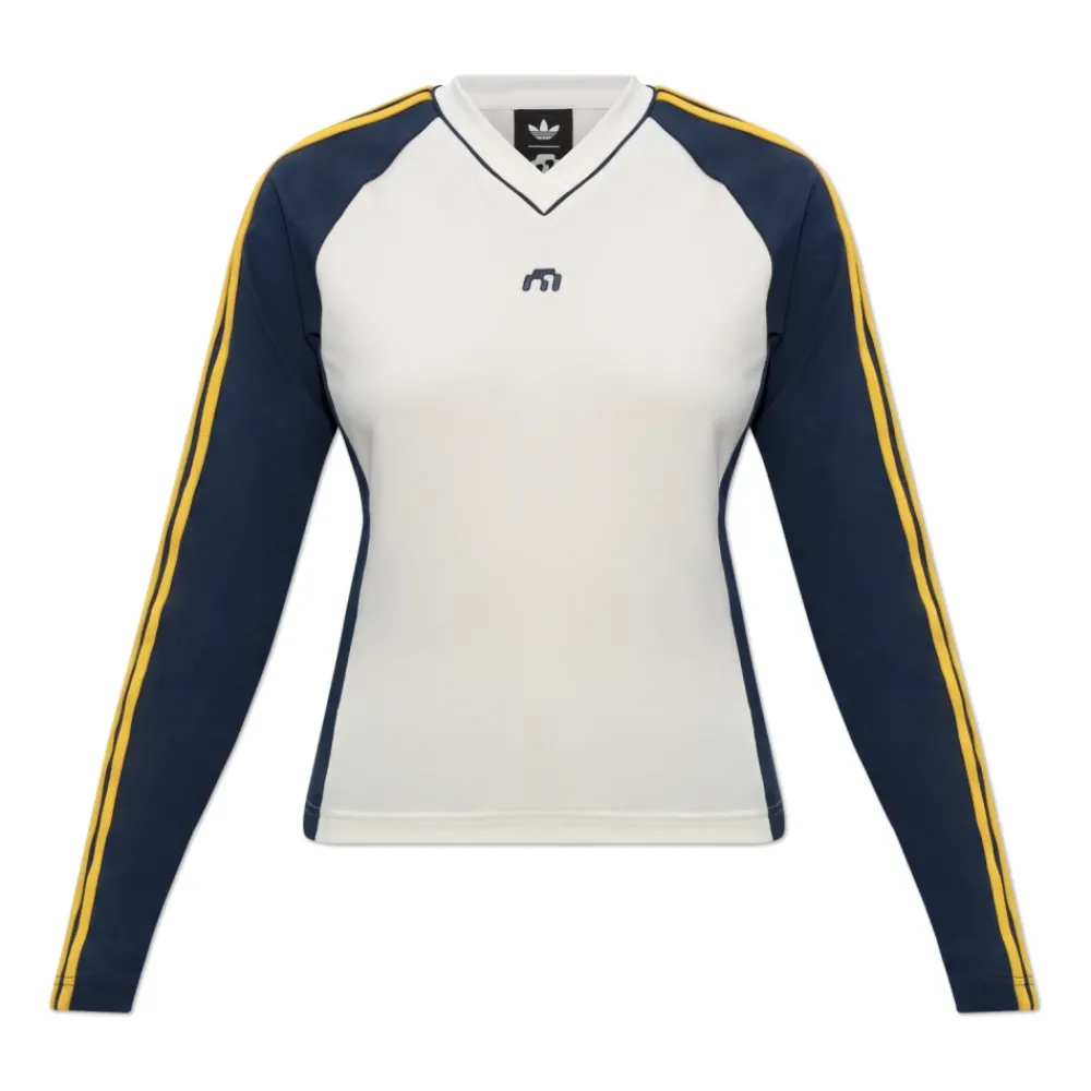 De Adidas Originals Long Sleeve Base Layer is een sportief, nauwsluitend top van de adidas x Miaou-samenwerking, ontworpen voor een gestroomlijnd silhouet en opvallende mouwdetails. Belangrijkste kenmerken: Wit | Marineblauw | Geel | Katoen | Ademend | Comfortabel | | Lichtgewicht | V-vormige halslijn met marineblauwe bies | Raglanmouwen met drie contrasterende strepen | Contrasterende zijpanelen | Geborduurd designerlogo op de borst | Afmetingen & pasvorm: Lengte model: 176 cm | Borst: 85 cm | Taille: 60 cm | Heupen: 89 cm | Model draagt maat: S | Nauwsluitende, sportieve snit | Samenstelling & onderhoud: 50% katoen | 40% polyester | 10% elastaan