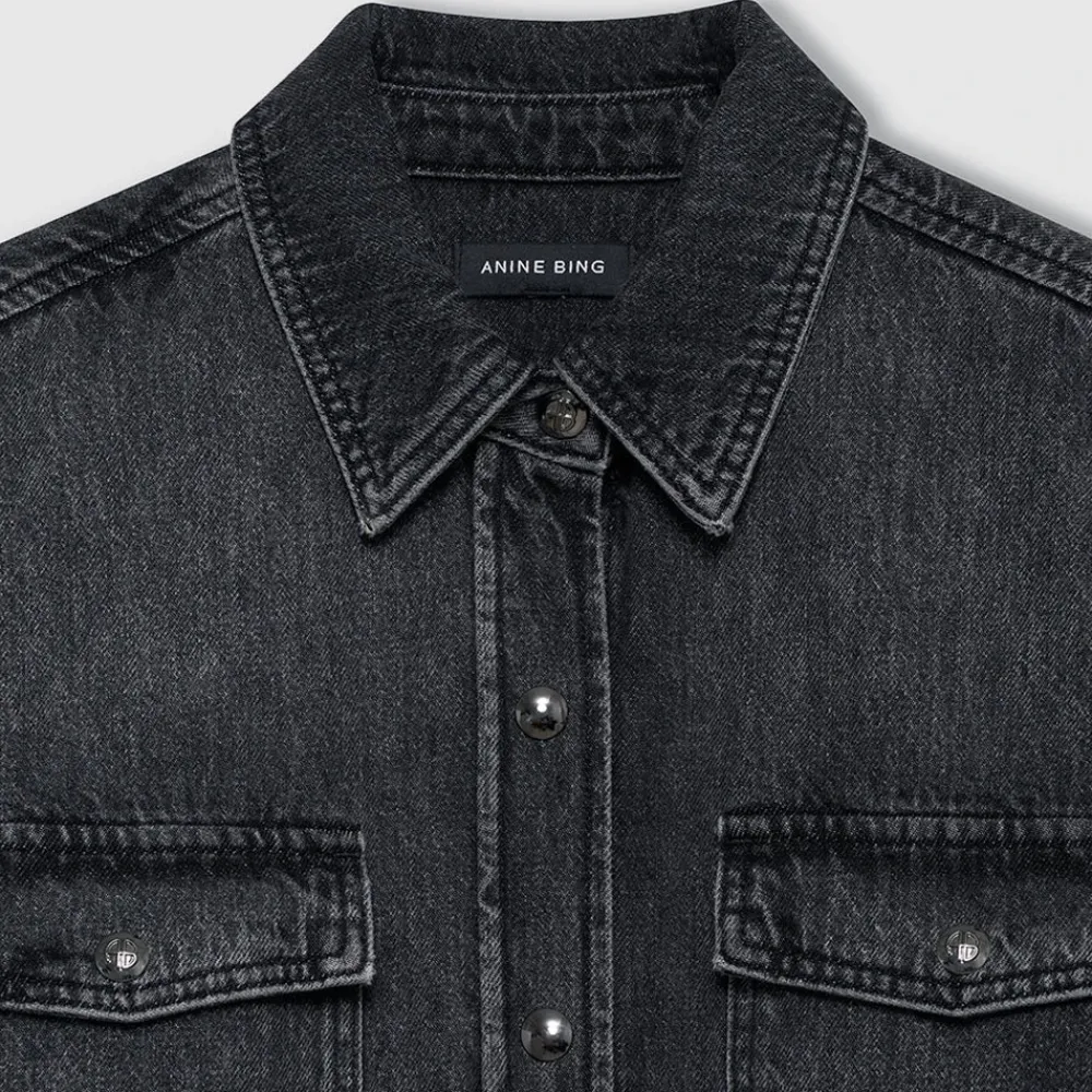Upgrade je stijl met deze Anine Bing denim jack. Met een cropped boxy pasvorm is deze donkergrijze gewassen denim shirt voorzien van brede schouders, twee borstzakken en logo drukknopen.