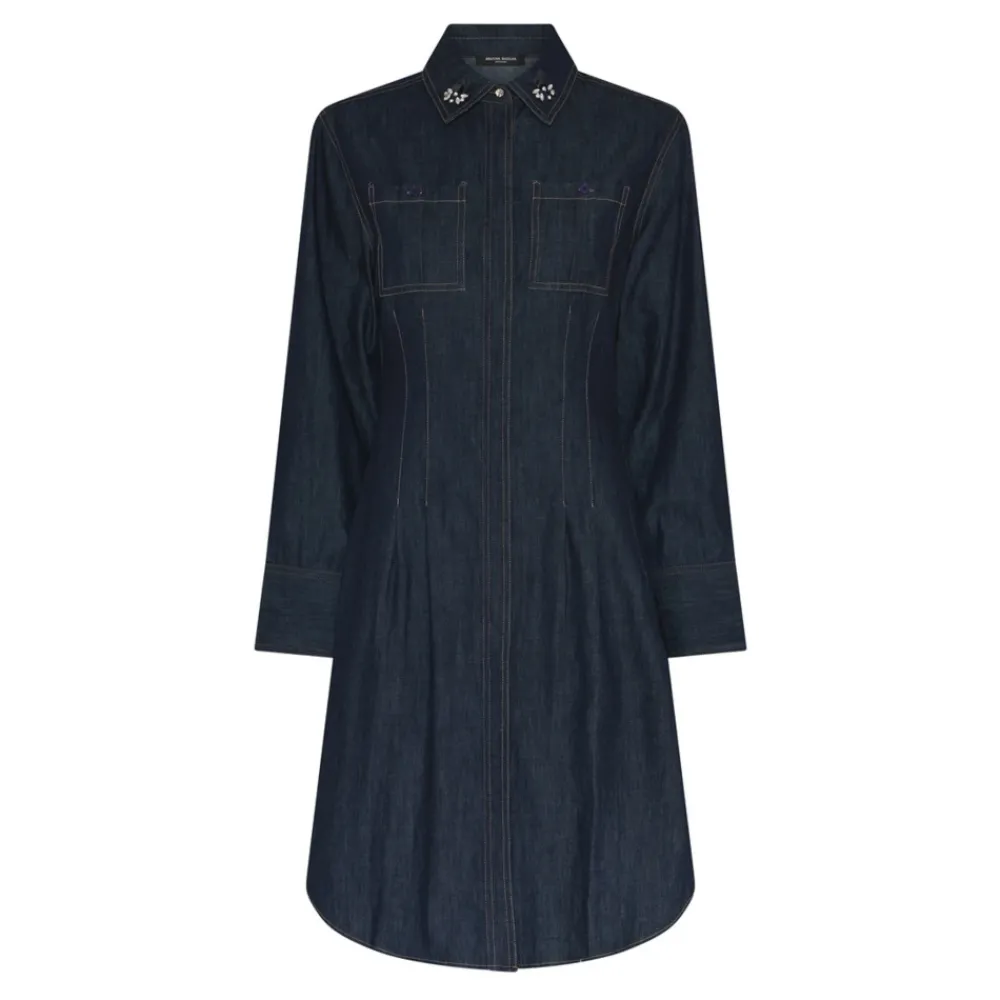 Bruuns Bazaar overhemdjurk ontworpen als een kort, casual kledingstuk. De klassieke overhemdsilhouet maakt het gemakkelijk te stylen voor zowel casual als smart-casual looks. Belangrijkste kenmerken: Blauw | Denim blauw | Overhemdjurk silhouet | Korte lengte