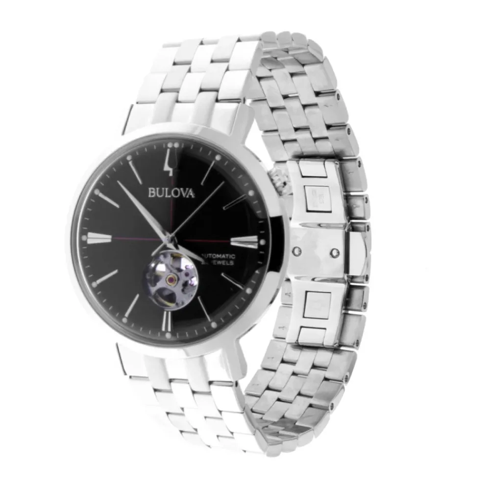De Bulova Aerojet Automatic combineert een klassieke open‑hart wijzerplaat met een automatisch uurwerk, ontworpen voor dagelijks gebruik en verzamelaars die waarde hechten aan zichtbare mechanieken. Belangrijkste kenmerken: Zwart | Nero e Acciaio | Roestvrij staal | Waterbestendig (30 meter) | 40‑uur gangreserve | Automatisch uurwerk | Vouwsluiting | Transparante achterkant | Open‑hart zwarte wijzerplaat | Lichtgevende wijzers en indexmarkeringen | Ronde kast | Afmetingen & pasvorm: Kastdiameter: 41 mm | Samenstelling & onderhoud: Roestvrij staal | Mineraalglas | Afnemen met een zachte, droge doek; vermijd chemische reinigingsmiddelen en langdurige blootstelling aan water; onderhoud indien nodig door een erkend servicepunt.