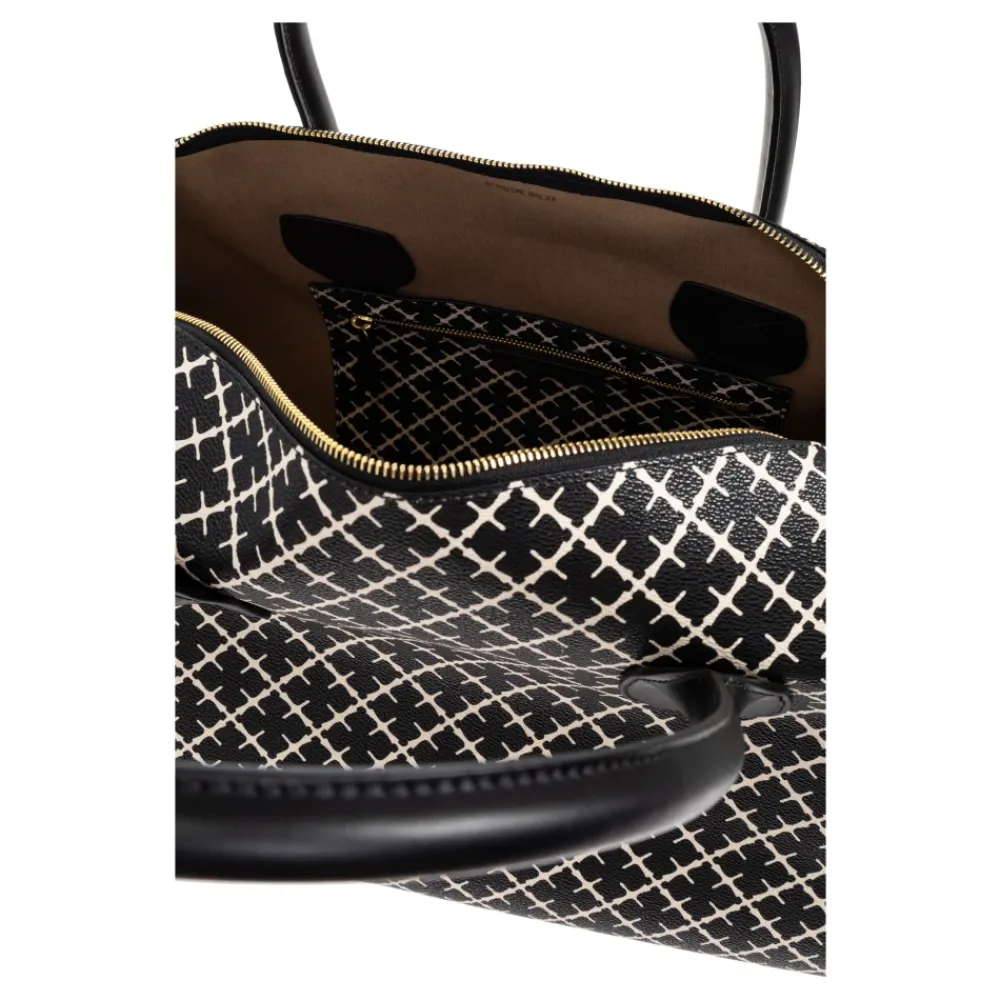 LULLU SMALL HANDBAG is een verfijnde keuze voor vrouwen die luxe eenvoud en tijdloze stijl waarderen. Ontworpen door het Deense merk BY MALENE BIRGER, betovert deze tas met zijn sensuele balans tussen Noordse classicisme en een vleugje romantische, artistieke geest. Zijn geometrische, subtiel afgeronde vorm wordt geaccentueerd door stevige handvatten en een afneembare schouderband, waardoor hij opmerkelijk functioneel is. Het oppervlak is versierd met een dicht, gestileerd klavermotief op een zwarte achtergrond, waardoor het geheel een tijdloze elegantie en een kenmerkend monogramkarakter krijgt. Het hoogwaardige materiaal, dat doet denken aan gestructureerd eco-leer met een beschermende coating, is bestand tegen vocht en vlekken, waardoor zowel duurzaamheid als elegantie van het product worden gegarandeerd. WAAROM DIT PRODUCT KOPEN? * Ontwerper, kenmerkend patroon geïnspireerd door Scandinavische esthetiek * Uitzonderlijk en gemakkelijk te onderhouden materialen * Veelzijdigheid dankzij ergonomische handvatten en verstelbare band * Luxueus detail voor veeleisende vrouwen die uniciteit waarderen Hoogte: 33 cm Breedte op breedste punt: 43 cm Bodembreedte: 23 cm Afmetingen van het model: Hoogte: 176 cm Buste: 85 cm Taille: 60 cm Heupen: 89 cm