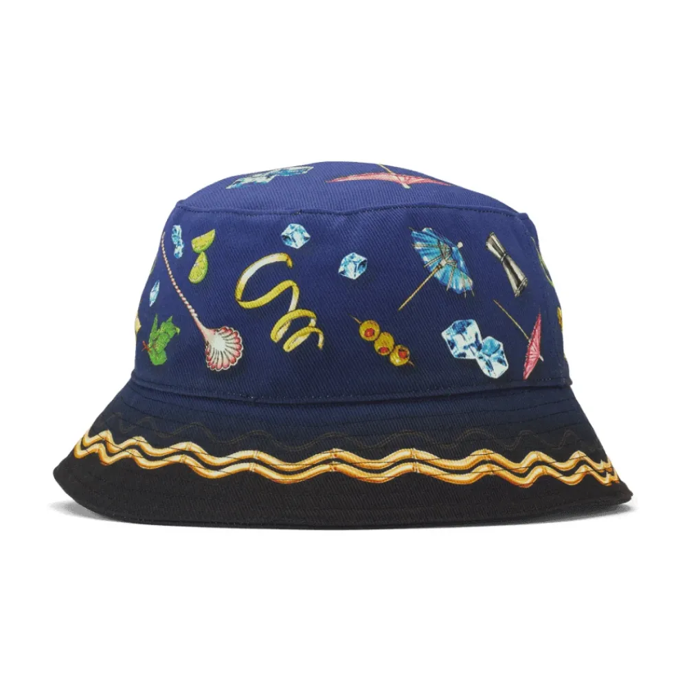 De Casablanca Bob Casa Club Bleuit hoed voegt een levendige toets toe aan elke outfit met zijn opvallende blauwe en veelkleurige grafische print. Deze hoed is gemaakt van premium katoen en combineert moeiteloos stijl en comfort. Belangrijkste kenmerken: Blauw | Multicolor | Katoen | Volledige grafische print | Pijl vallende rand | Sportief silhouet | Afmetingen en pasvorm: Relaxte pasvorm | Samenstelling en onderhoud: 100% Katoen | Alleen handwas, niet in de droogtrommel.