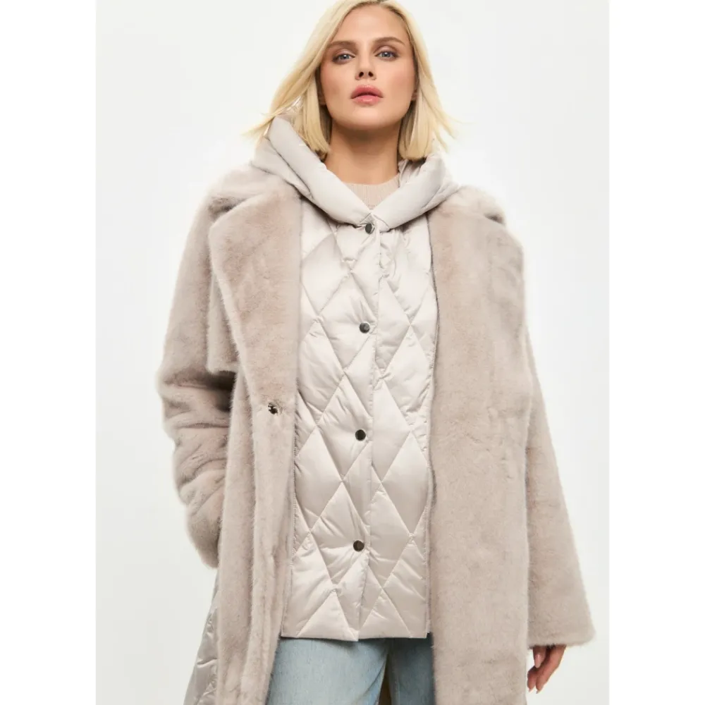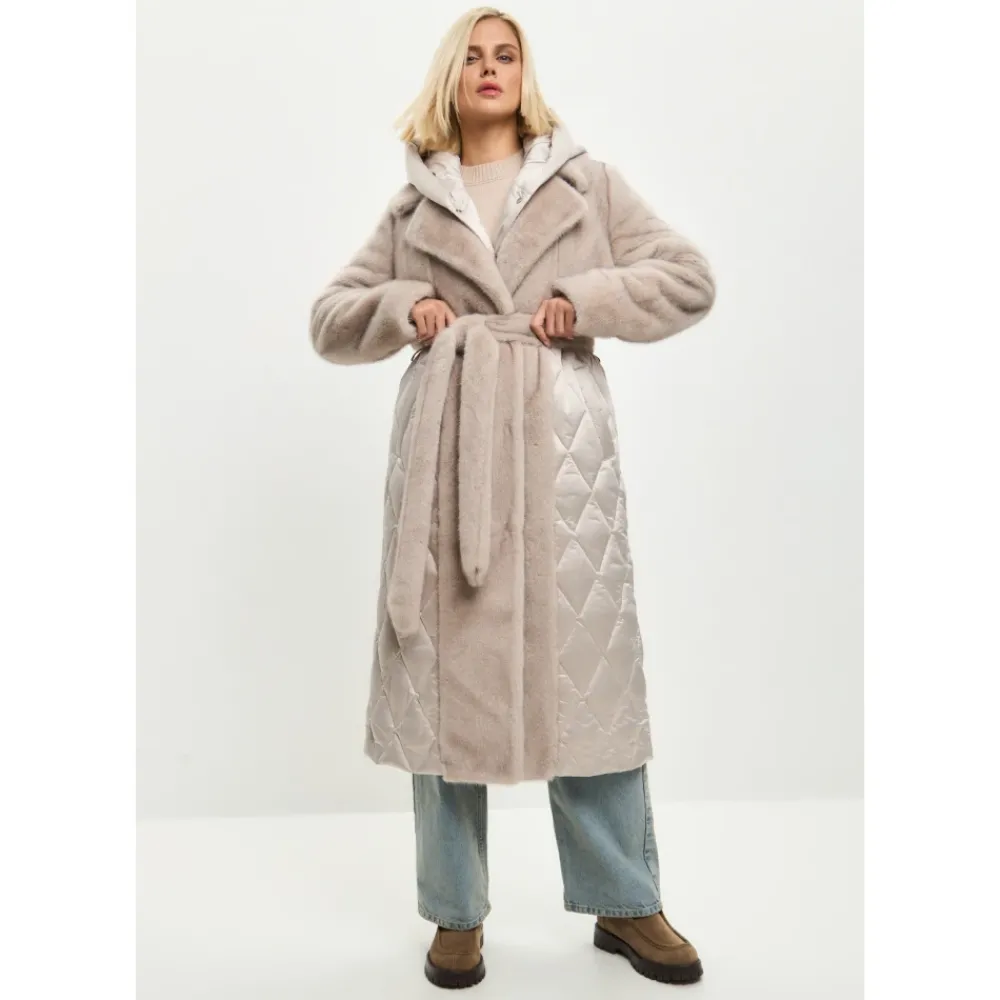 DAMES Cesare Gaspari Gewatteerde Pareljas van Imitatiebont met Riem