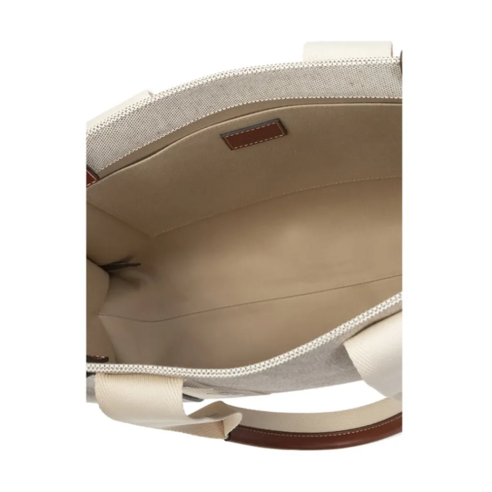 De Medium Woody Tote Bag is een chic en functioneel accessoire, ideaal voor dagelijks gebruik. Deze veelzijdige tote bag kan als handtas of schoudertas worden gedragen, waardoor hij perfect bij elke outfit past. Belangrijkste kenmerken: Wit | Bruin | Linnen canvas | Twee handvatten bovenaan | Interne vak met insteekvak | Zwarte logo print | Glanzend bruine kalfsleren details | Afmetingen en pasvorm: B37 x H26 x D12 cm | Schouderband drop: 25 cm | Regular fit |