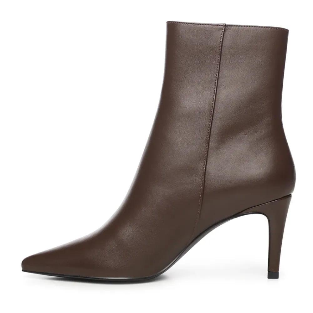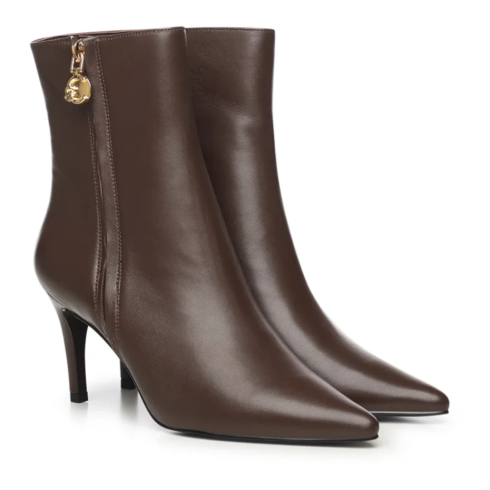 Coccinelle enkellaarsjes van glad leer, ontworpen met een zijrits en een hak van 80 mm voor een verfijnde, gemakkelijke stijl. Ideaal om alledaagse en kantoorlooks te verfraaien. Belangrijkste kenmerken: Bruin | Brunette | Leer | Zijrits sluiting | Rubberen zool | Bovenwerk van glad leer | Hoge hak | Afmetingen & pasvorm: Hakhoogte: 80 mm | Samenstelling & verzorging: Leer | Afnemen met een zachte doek. Gebruik indien nodig leerreiniger en conditioner. Niet in de machine wassen.