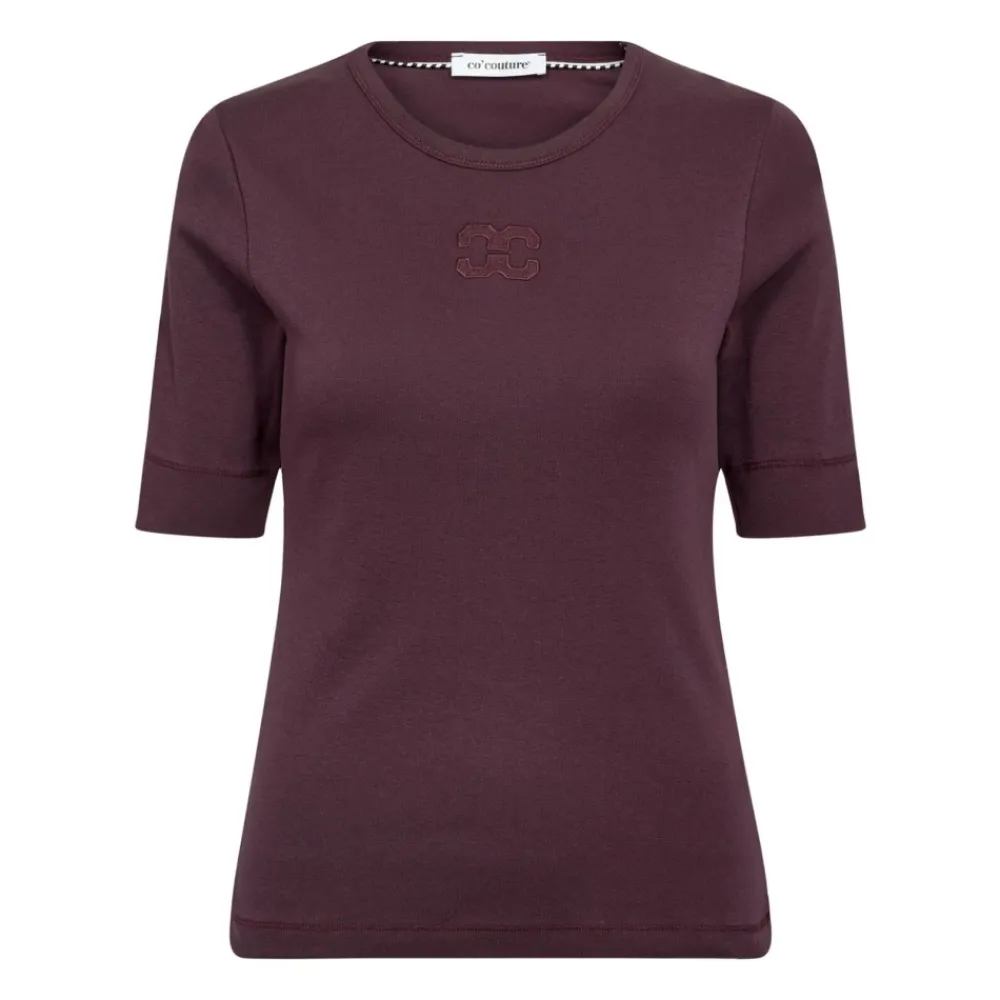 Blijf stijlvol en comfortabel in deze Co’Couture basic tee met korte mouwen en een ronde hals. Slank ontwerp in 80% viscose en 20% polyamide. Verkrijgbaar in wijnrode kleur.