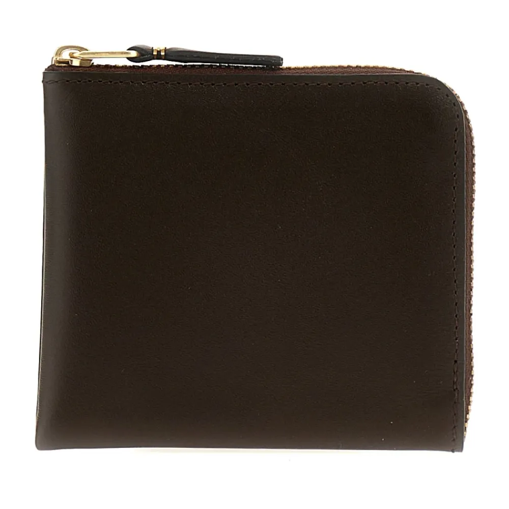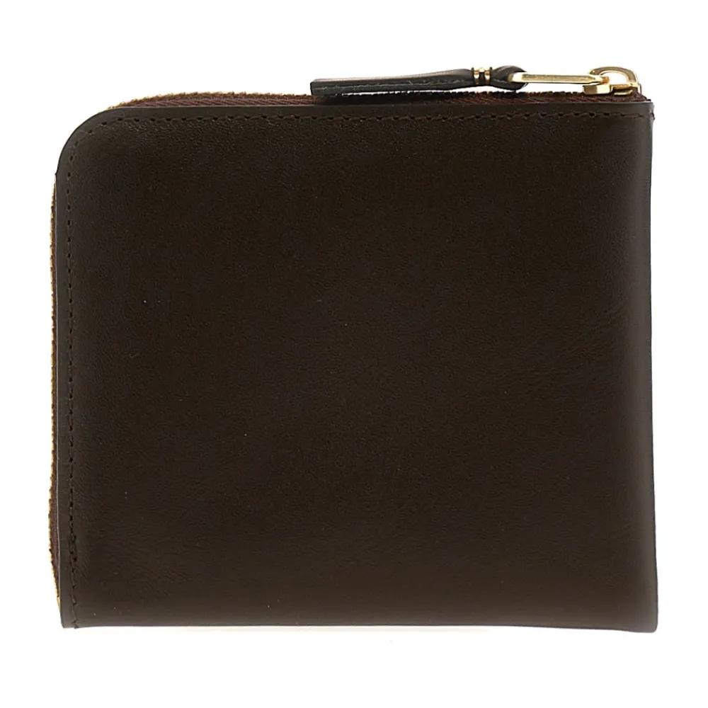 Comme des Garçons kleine leren portemonnee uit de Classic Line. Een compact ontwerp met hoekrits dat kaarten en munten georganiseerd houdt en gemakkelijk in zakken of kleine tassen past. Belangrijkste kenmerken: Bruin | Leer | Hoekrits | Goudkleurige metalen rits | Intern muntzakje | Interne kaartsleuven | Compact vierkant silhouet | Hoekrits met chevron leren trekker | Logo in reliëf op interne zak | Afmetingen & pasvorm: B 11 x H 9,5 cm | One size | Samenstelling & verzorging: 100% rundleer