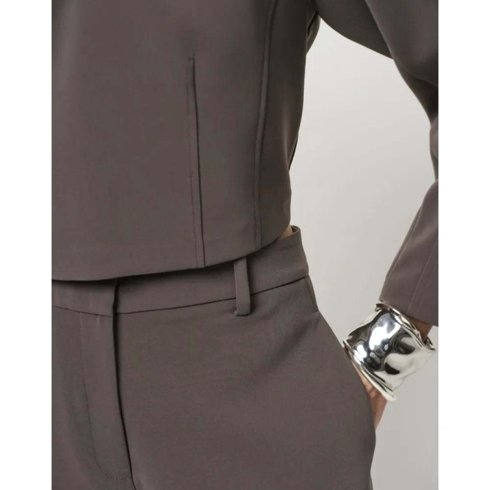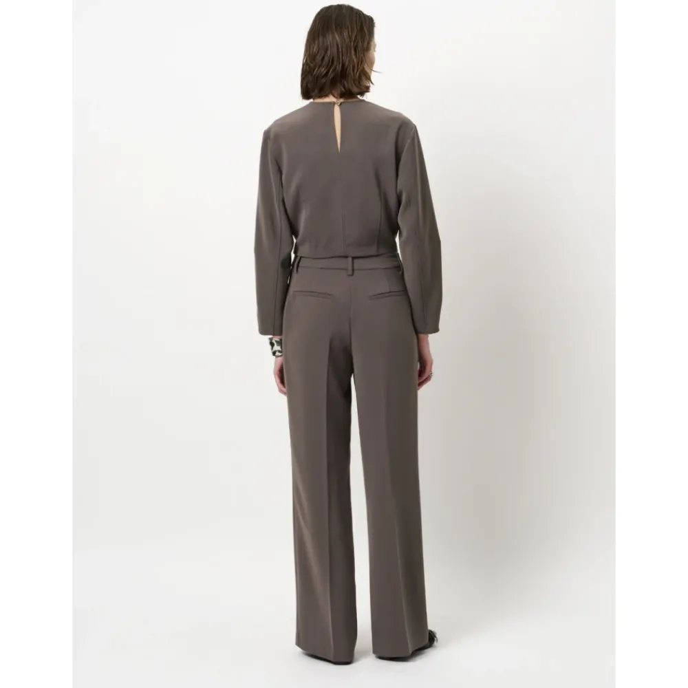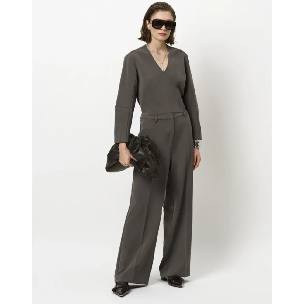 Dante 6 Alain tailored pants in Antique Grey zijn verfijnde wide-leg broeken met een scherpe vouw aan de voorkant, ontworpen voor gepolijste alledaagse- en werkkleding looks. Belangrijkste kenmerken: Antique Grey | Polyester | Haak- en ritssluiting aan de voorkant met riemlussen | Zijzakken | Verfijnde twill stof | Rechte wijde pijp | Vouw langs de benen | Decoratieve paspelzakken aan de achterkant | Onderdeel van een set | Afmetingen & pasvorm: Wide-leg pasvorm | Model is 1.78 m en draagt maat 36 | Samenstelling & verzorging: 92% polyester | 8% elastaan