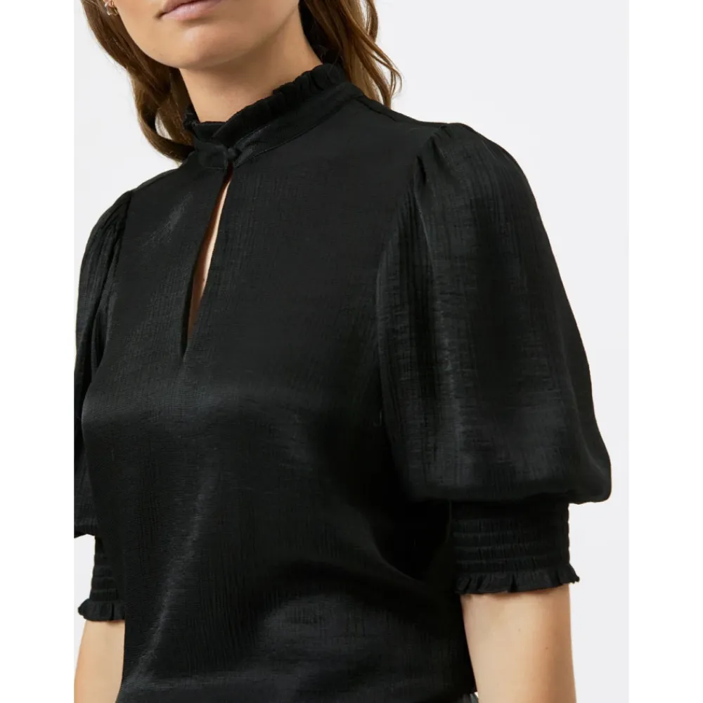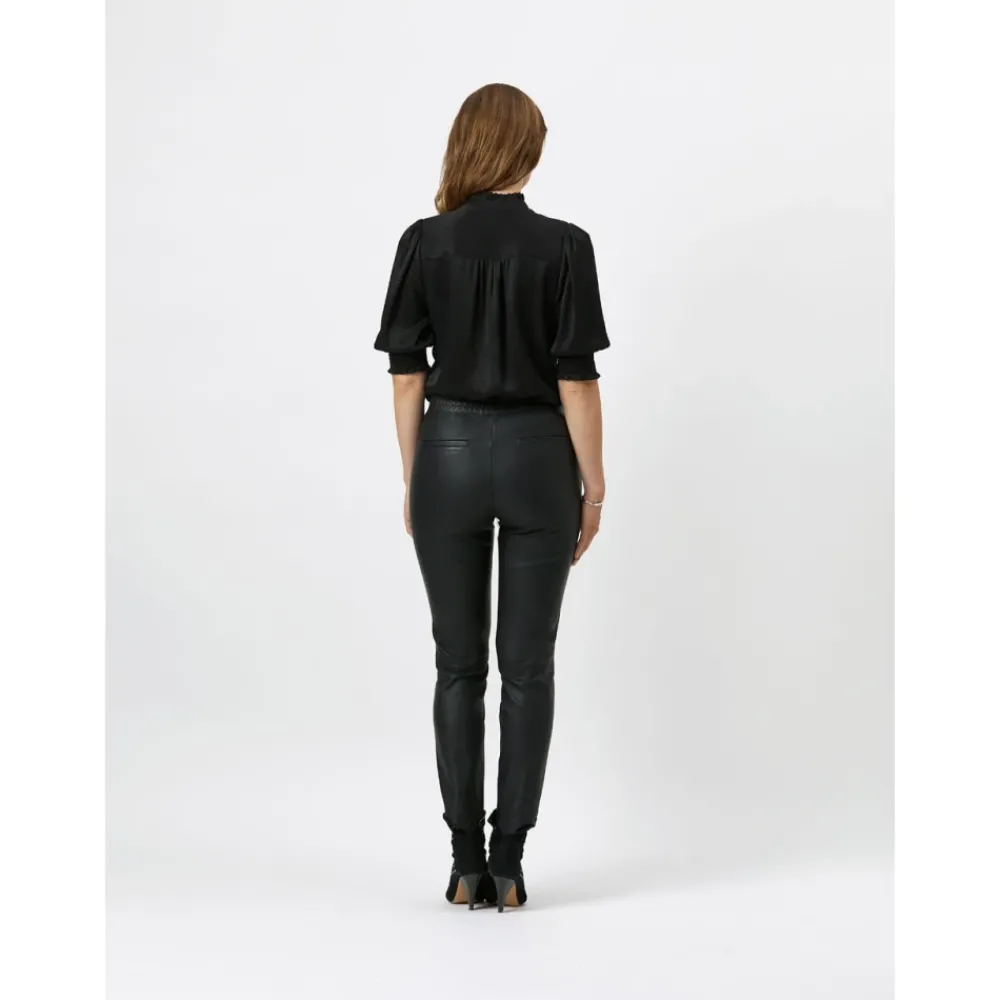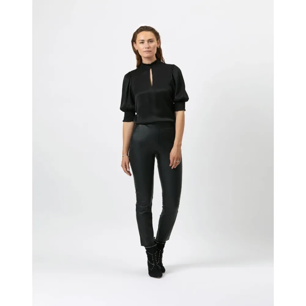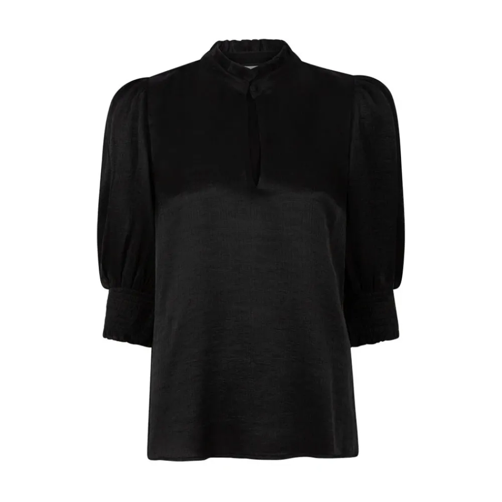 Upgrade je garderobe met de Feline top in Raven van Dante 6. Deze getextureerde viscose top heeft een diepe V-hals met knoopsluiting, gerimpelde kraag en gepofte mouwen met elastische manchetten. Aan de achterkant zijn plooien toegevoegd voor een losse pasvorm. Combineer het met een chique rok en bijpassende laarsjes. Het model is 1,78 m lang en draagt maat 36.