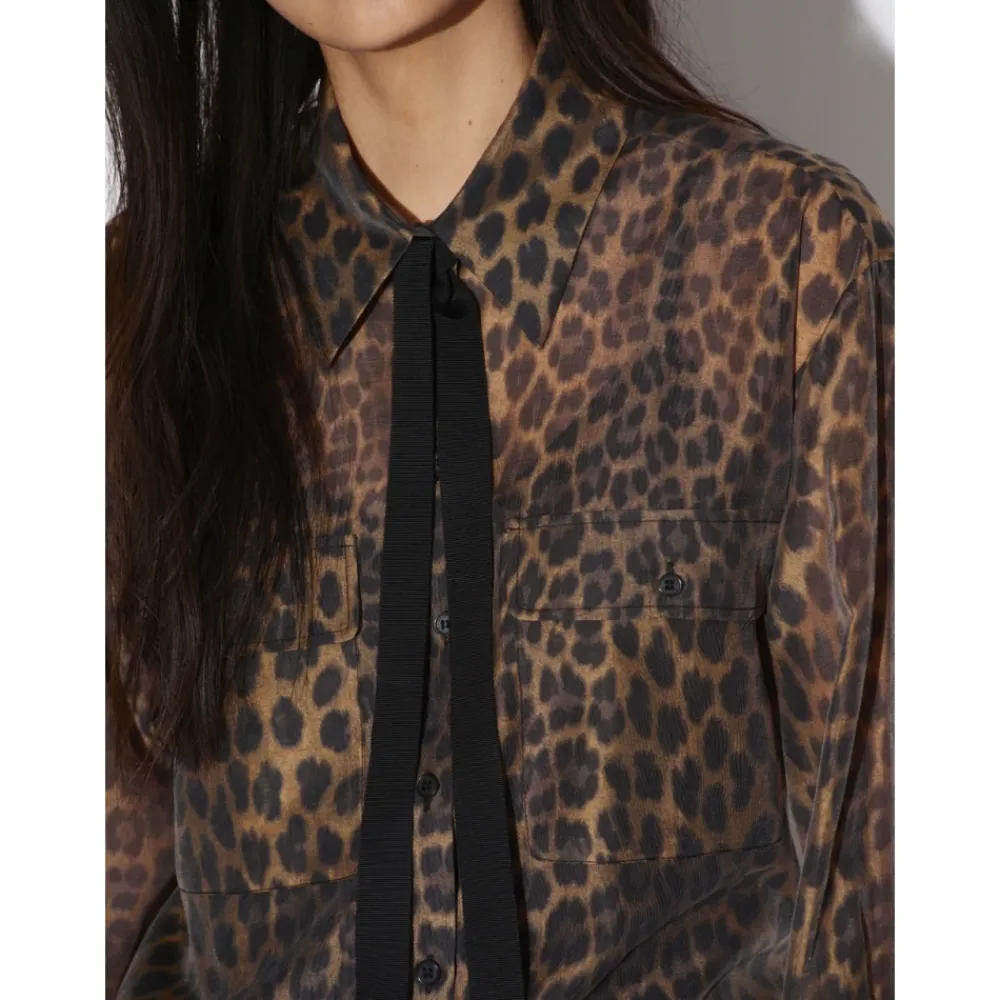 De Dante 6 Rique Shirt is een blouse met luipaardprint en een strikdetail, die statement styling combineert met ademende materialen. Het zwarte sjaaldetail dat gestrikt kan worden en de klepzakken maken het ideaal om denim of tailoring mee op te fleuren voor een gedurfde, vrouwelijke look. Belangrijkste kenmerken: Bruin | Tencel mix | Ademende stof | Knoopsluiting aan de voorkant | Twee klepzakken op de borst | Strik sjaaldetail | Manchetten met knopen | Luipaardprint | Klassieke shirtkraag | Lange mouwen | Zwart sjaaldetail dat gestrikt kan worden in een strik of knoop | Twee borstklepzakken | Afmetingen & pasvorm: Model is 1,78 m lang en draagt maat 36. | Samenstelling & verzorging: Tencel mix | Viscose voile (voering)