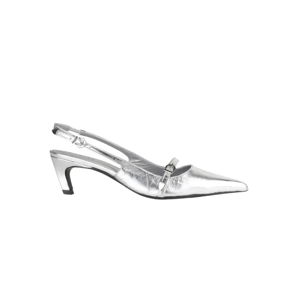 De Dante 6 Shay Slingback Pump combineert een opvallende craquelé metallic afwerking met een verstelbare slingback voor geklede gelegenheden. Het ontwerp biedt een glamoureuze, glanzende look, ideaal voor avondkleding en evenementen. Belangrijkste kenmerken: Zilver | Geitenleer | Verstelbare slingback riem | Slingback ontwerp | Craquelé metallic afwerking | Glanzende metallic afwerking | Samenstelling & verzorging: Gecertificeerd metallic geitenleer: 100% geitenleer | Voering: 100% gecertificeerd geitenleer | Loopzool: 100% kunstmatig rubber (Neolite)