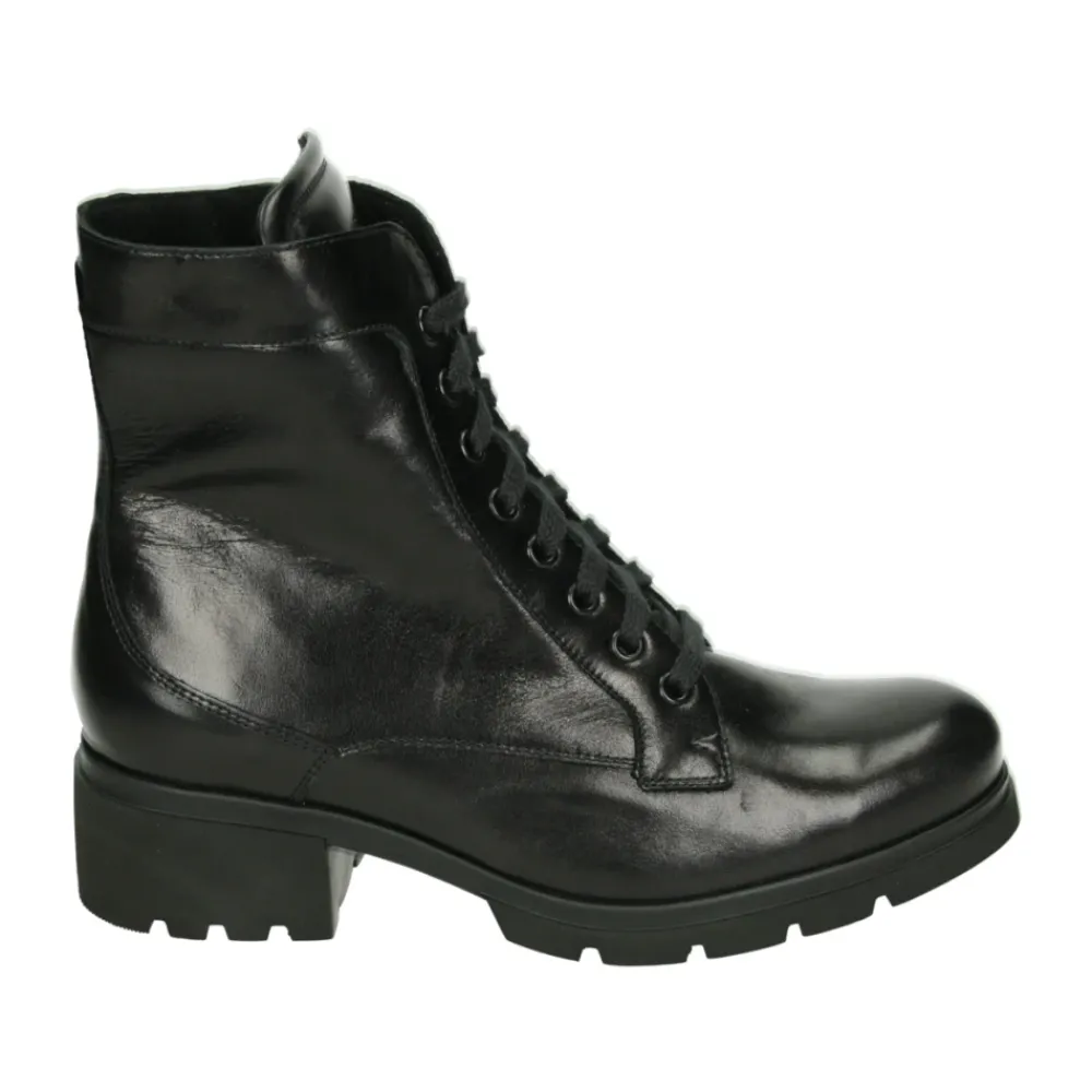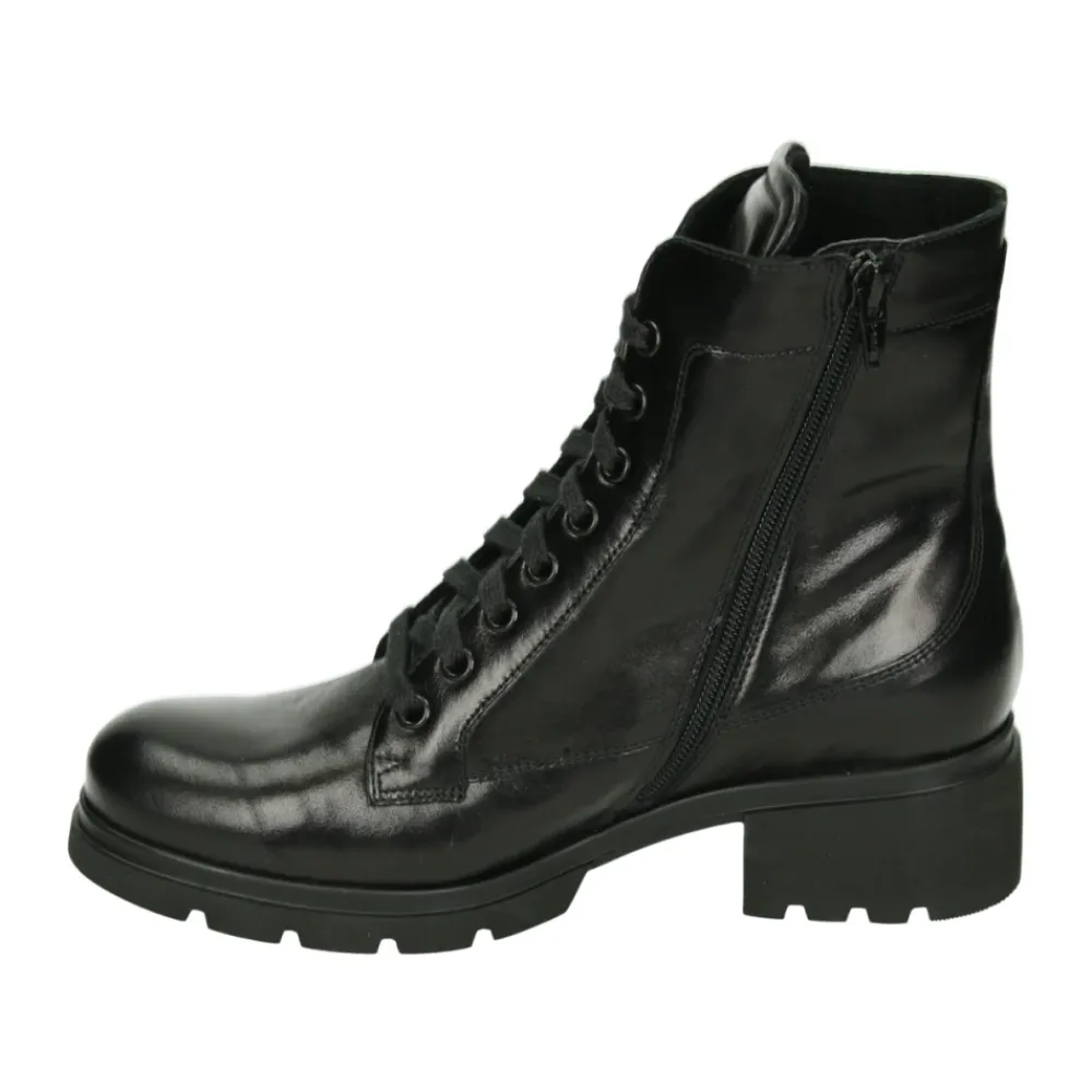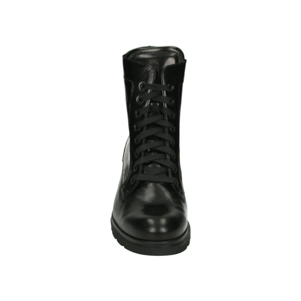 Verrijk je stijl met deze sportieve mid lace-up boots voor dames van Durea. Modelnaam 9785 K in zwart, met een brede K-wijdte en uitneembaar voetbed. Gemaakt van glad leer met rubberen zool.