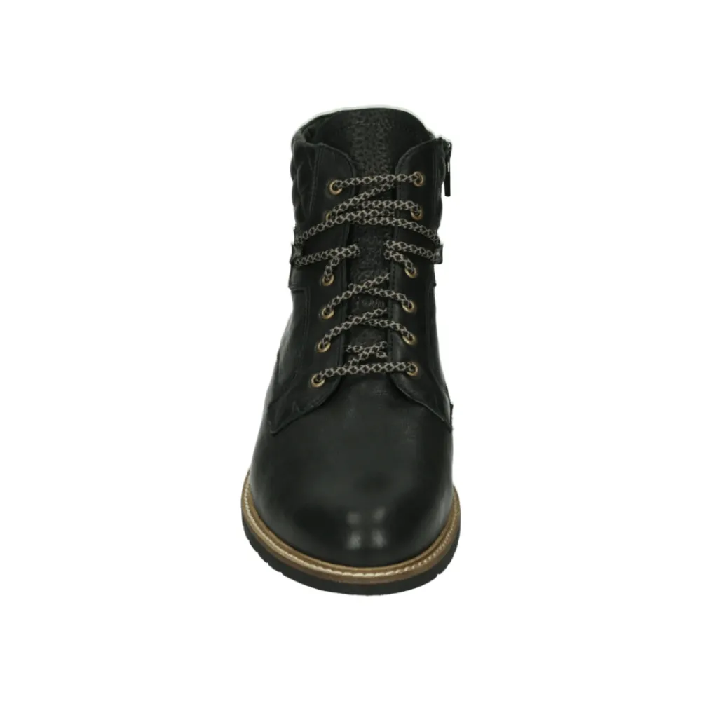 Verrijk je stijl met deze sportieve mid lace-up boots voor dames van Durea. Modelnaam 9731 K in zwart, met een brede K-wijdte en uitneembaar voetbed. Gemaakt van glad leer met een rubberen zool.