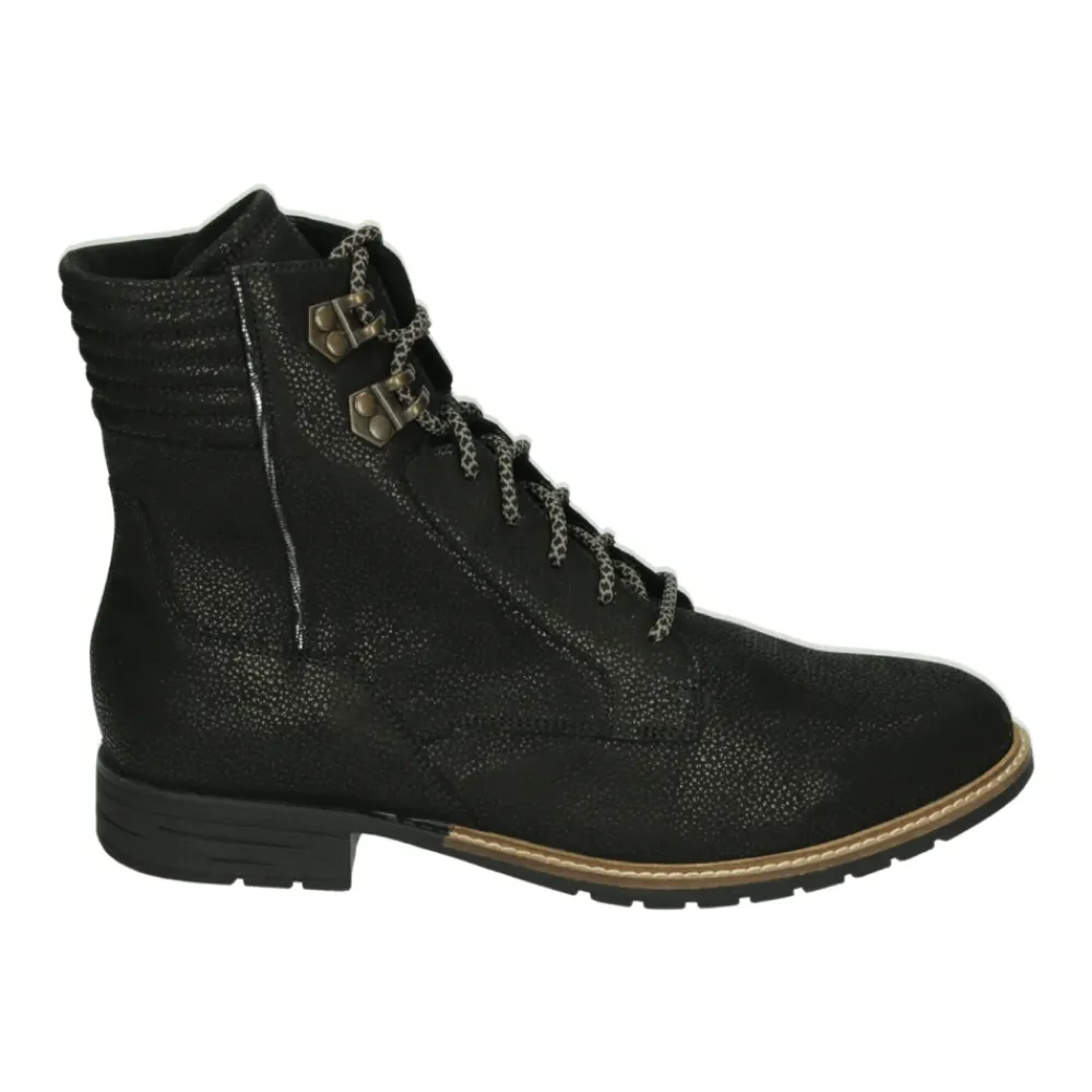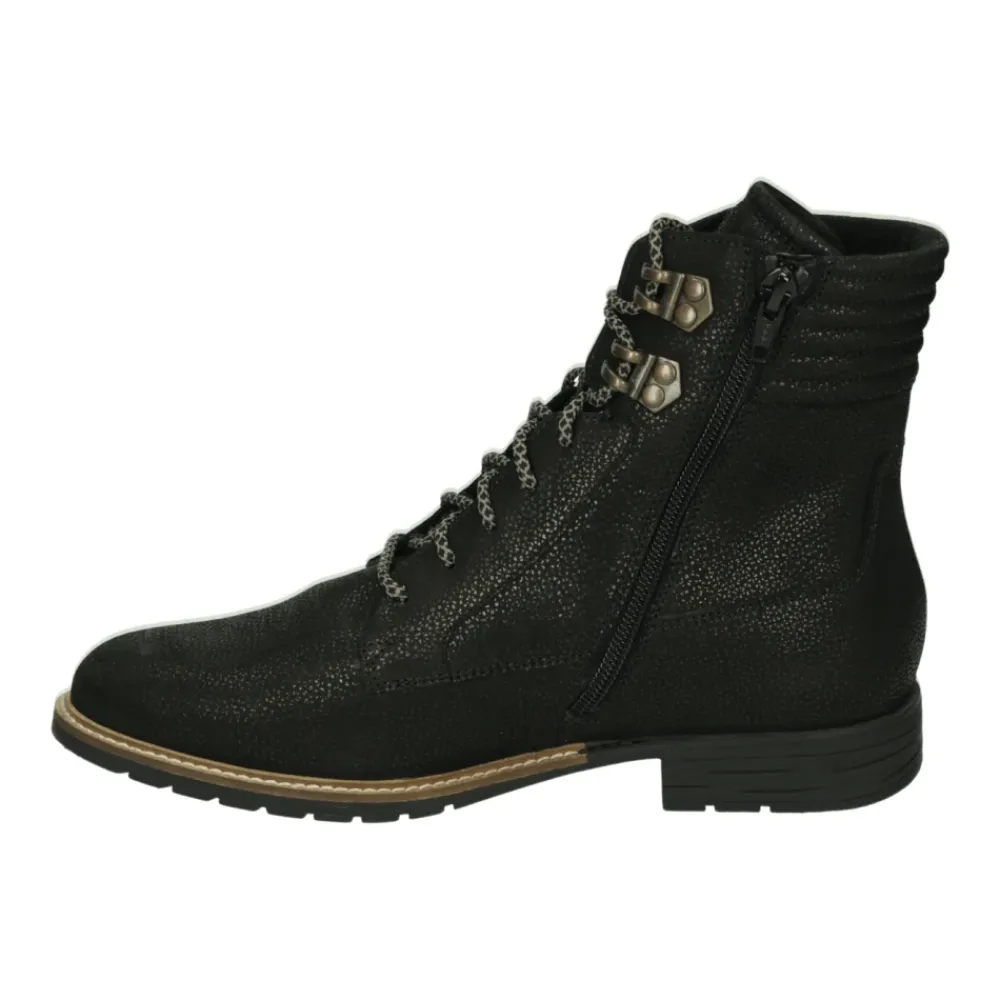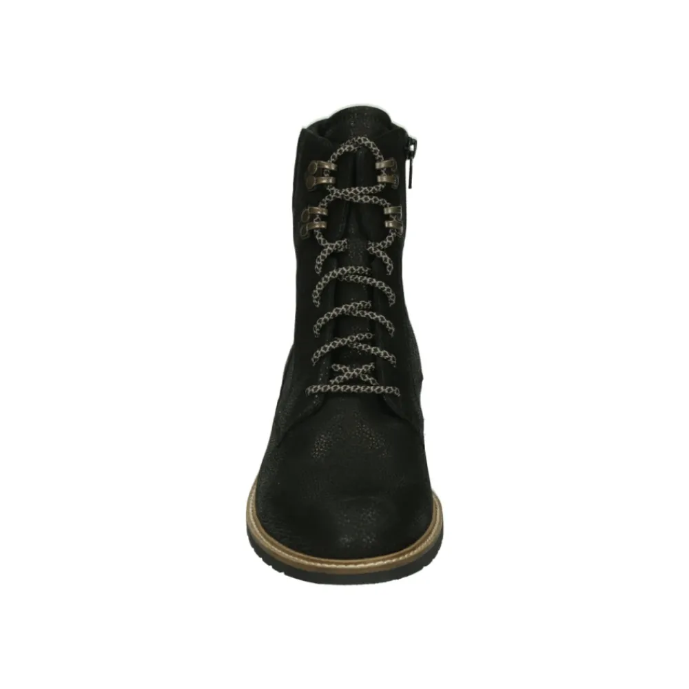 Verrijk je stijl met deze sportieve mid lace-up laarzen voor dames van Durea. Modelnaam 9776 H in zwart, met een brede H-wijdte en uitneembaar voetbed. Gemaakt van suède bovenkant met rubberen zool. Materiaaldetails: leer.