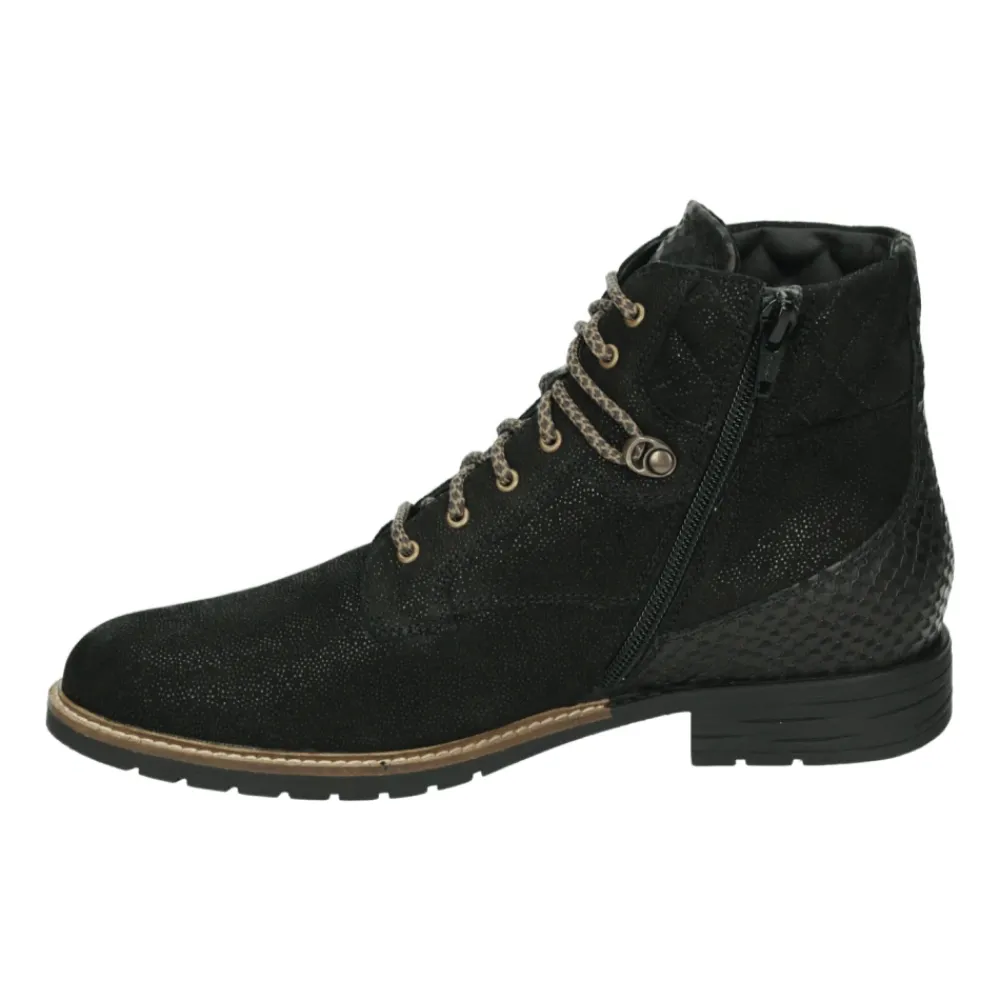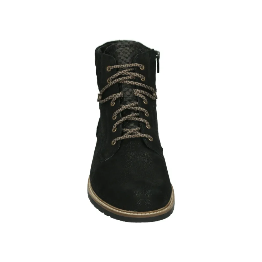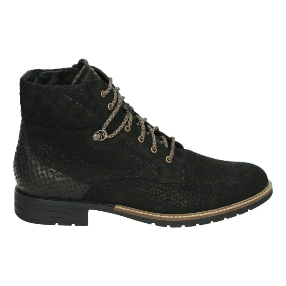 Verrijk je stijl met deze sportieve mid lace-up boots voor dames van het merk Durea. Modelnaam 9731 H in zwart, met een brede H-pasvorm en uitneembaar voetbed. Gemaakt van leer en nubuck bovenkant met rubberen zool.