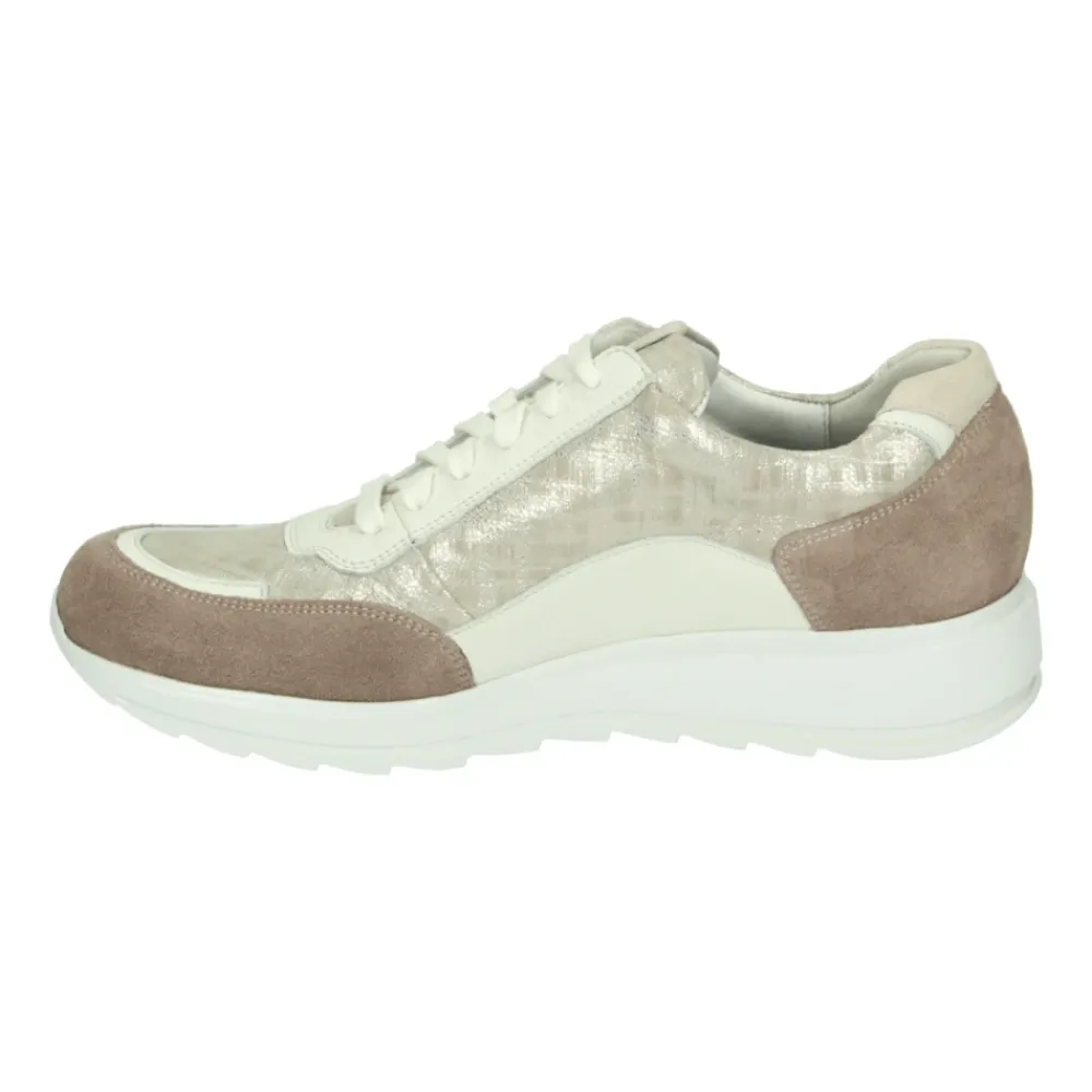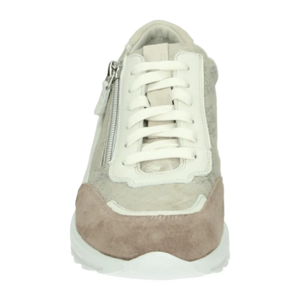Upgrade je casual stijl met deze Durea damesschoenen sportief laag. Modelnaam 6263 G in beige dessin. Met een G-wijdte en uitneembaar voetbed, gemaakt van leer en suède bovenkant met rubberen zool.