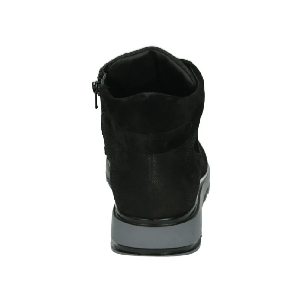 Verrijk je stijl met deze sportieve mid lace-up laarzen voor dames van het merk Durea. Modelnaam 9684 H in zwart, met een brede H-pasvorm en uitneembaar voetbed. Gemaakt van leer en nubuck bovenkant, rubberen zool voor comfort en duurzaamheid.