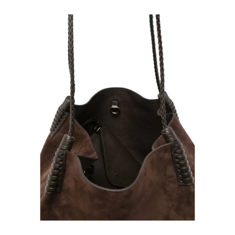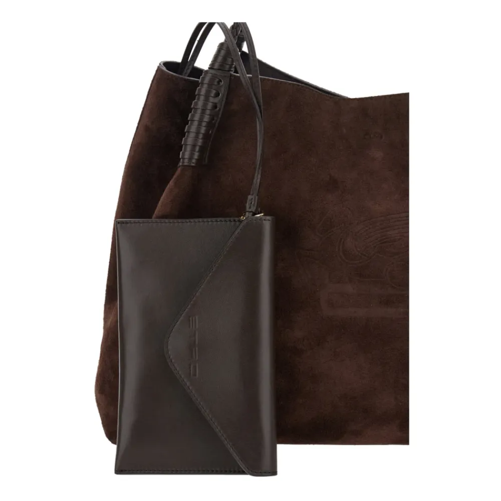 Upgrade je stijl met deze bruine Etro ‘Medium Libra’ tote tas gemaakt van suède. Met een warmgestempeld ‘Pegaso’ logo, twee gevlochten bovenhandvatten, ongevoerd interieur, kliksluiting en metalen voeten aan de onderkant. Afmetingen: Breedte – 29 cm, Hoogte – 39 cm, Diepte – 16 cm. Gemaakt van 100% runderhuid met details van kalfsleer.