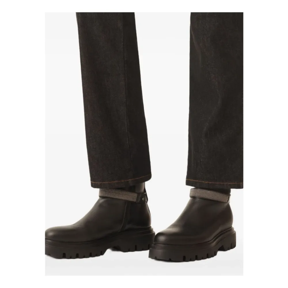 Fabiana Filippi zwarte leren enkellaarsjes voor vrouwen, gemaakt van kalfsleer met ronde neus, zijrits sluiting en platte leren zool. Samenstelling: 100% Kalfsleer.