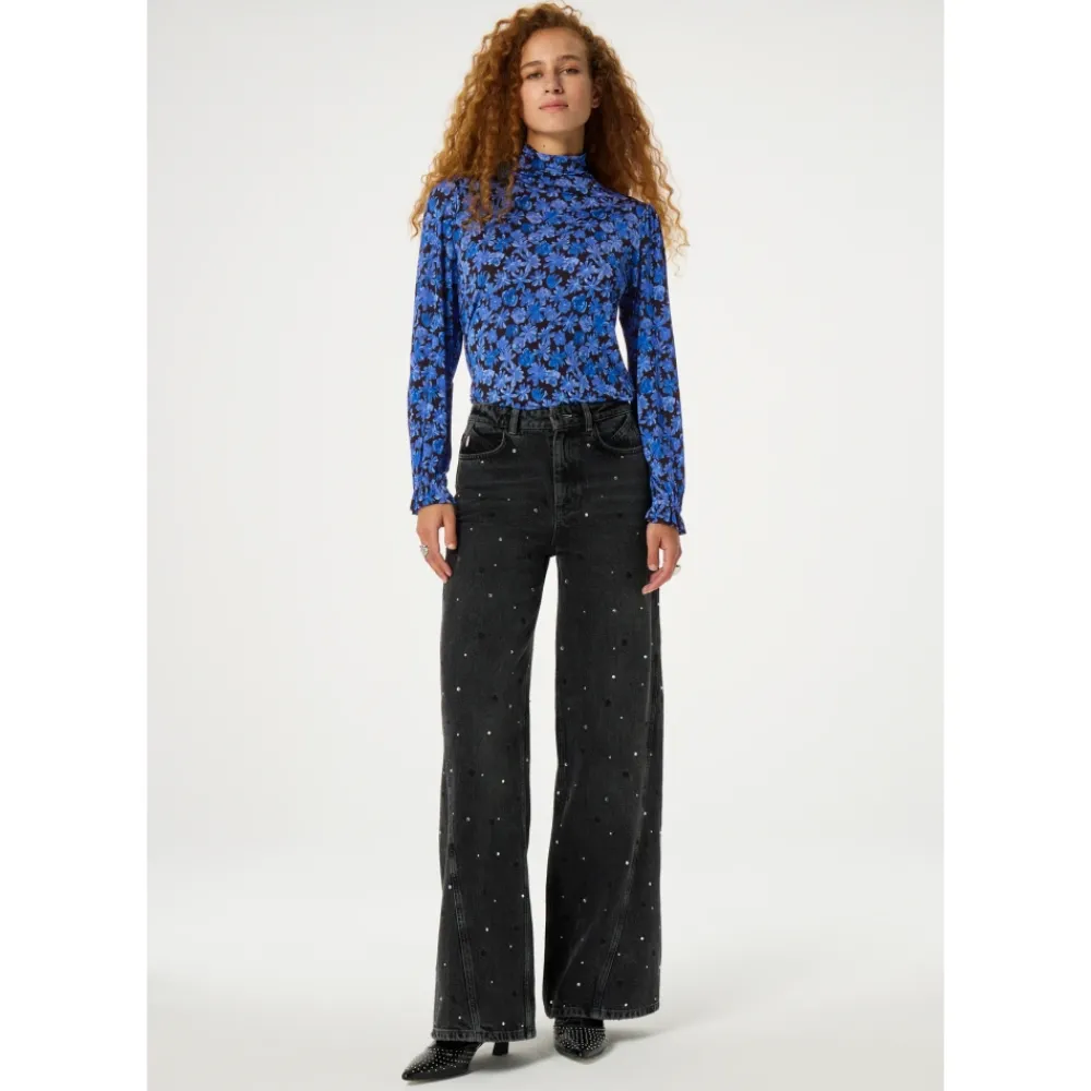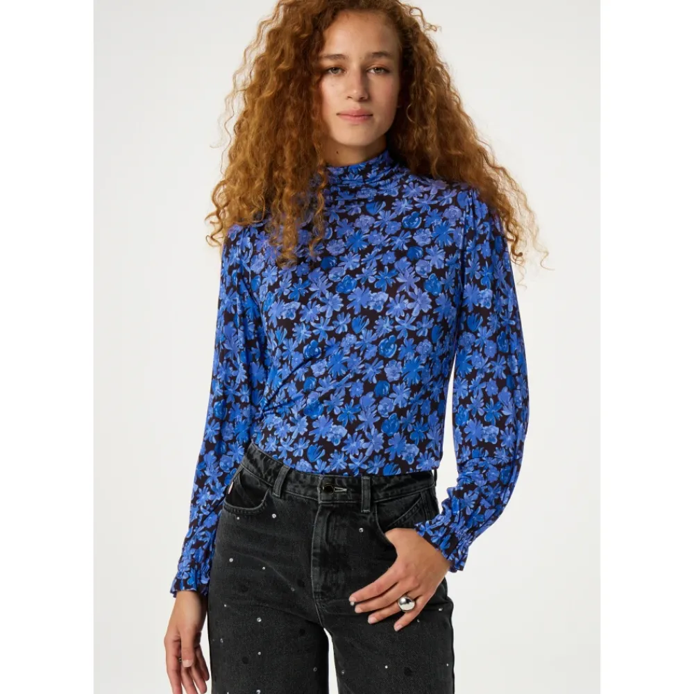 De Billy Top van Fabienne Chapot is een stijlvolle toevoeging aan elke garderobe, met een levendige blauwe bloemenprint en een chique turtleneck design. Gemaakt van een mix van viscose en elastaan, biedt het een getailleerd silhouet dat perfect te combineren is met jeans voor een casual maar modieuze look. Belangrijkste kenmerken: Blauw | Viscose | Elastaan | Turtleneck | Lange mouwen | Blauwe bloemenprint | Afmetingen en pasvorm: Getailleerd silhouet | Samenstelling en onderhoud: Viscose | Elastaan | Machinewas koud, drogen op lage temperatuur