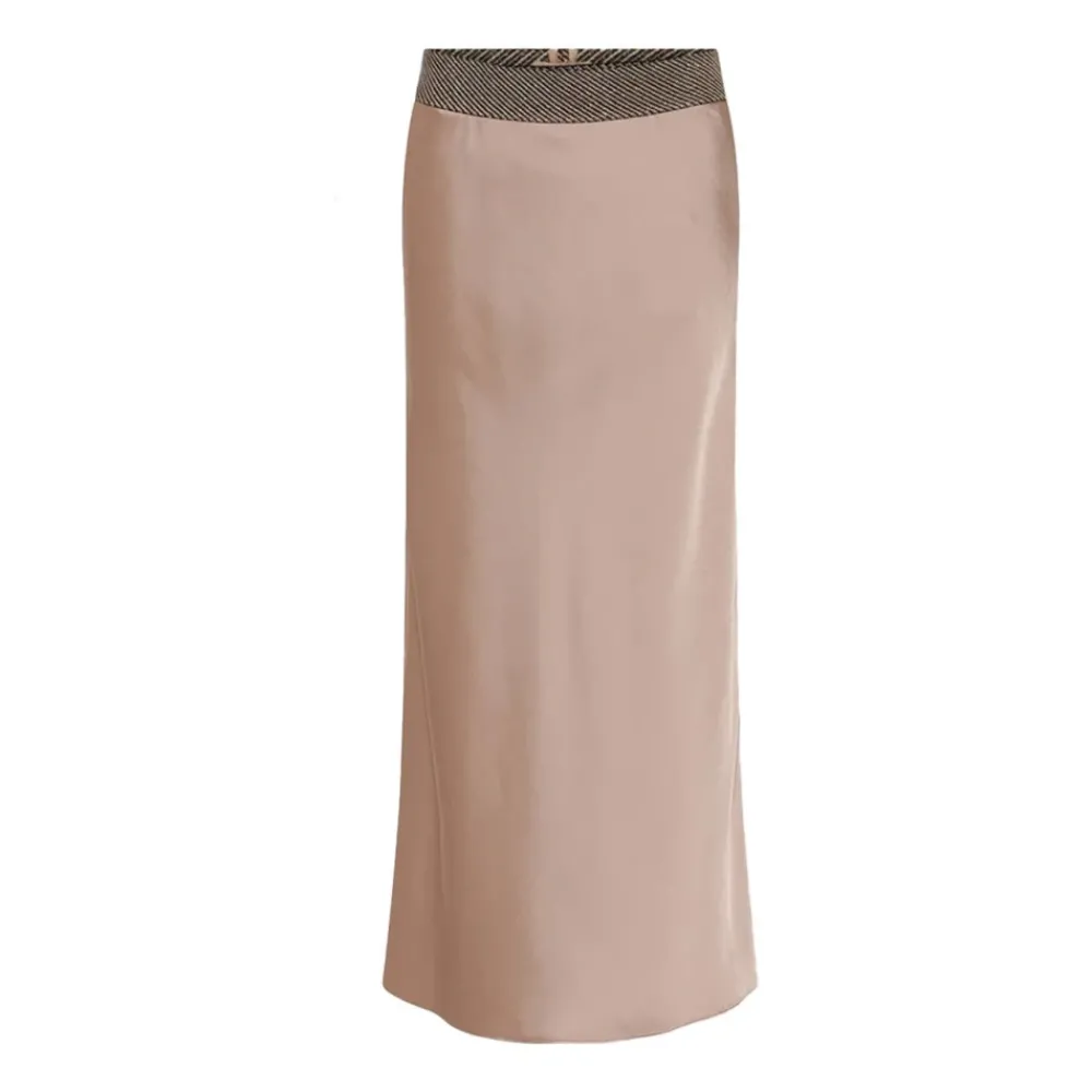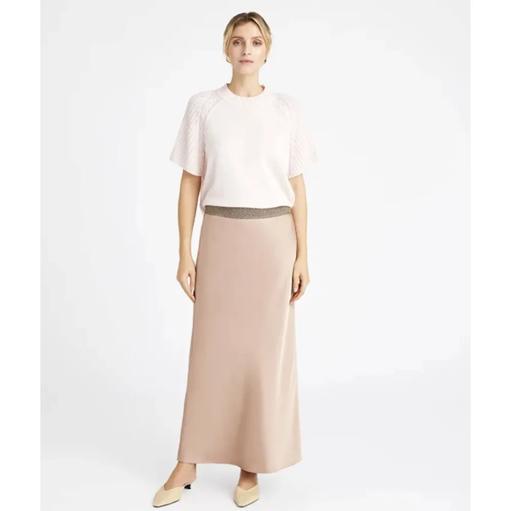 Verrijk je garderobe met de Bias Cut Lange Rok van Gustav, een perfecte mix van stijl en comfort voor elke gelegenheid. Belangrijkste kenmerken: Lichtbruin | Beige | 64% Viscose, 36% Polyester | Samenstelling en onderhoud: 64% Viscose | 36% Polyester | Voering: 97% Polyester, 3% Elastane | Uitsluitend chemisch reinigen.