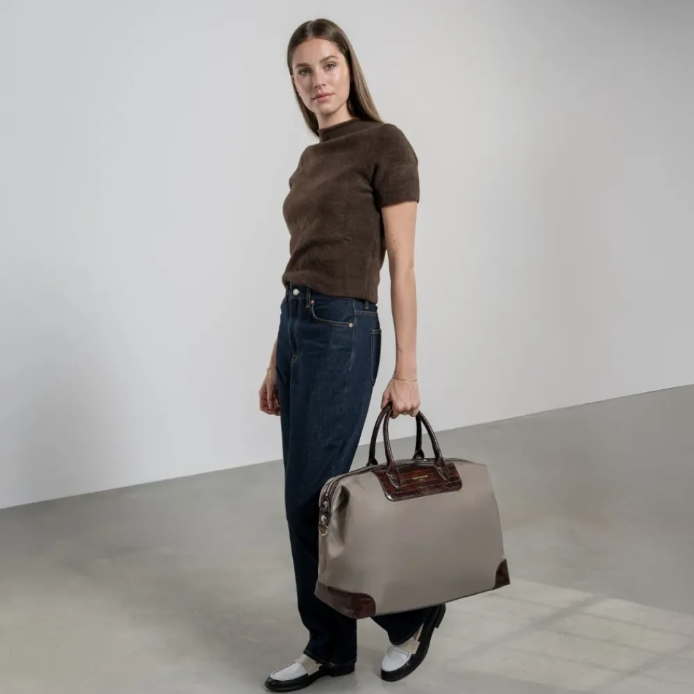 “Du Louvre Celie Polyurethaan leer Weekendtas van Isabel Bernard is uitgevoerd in Taupe en combineert stijl met functionaliteit.”