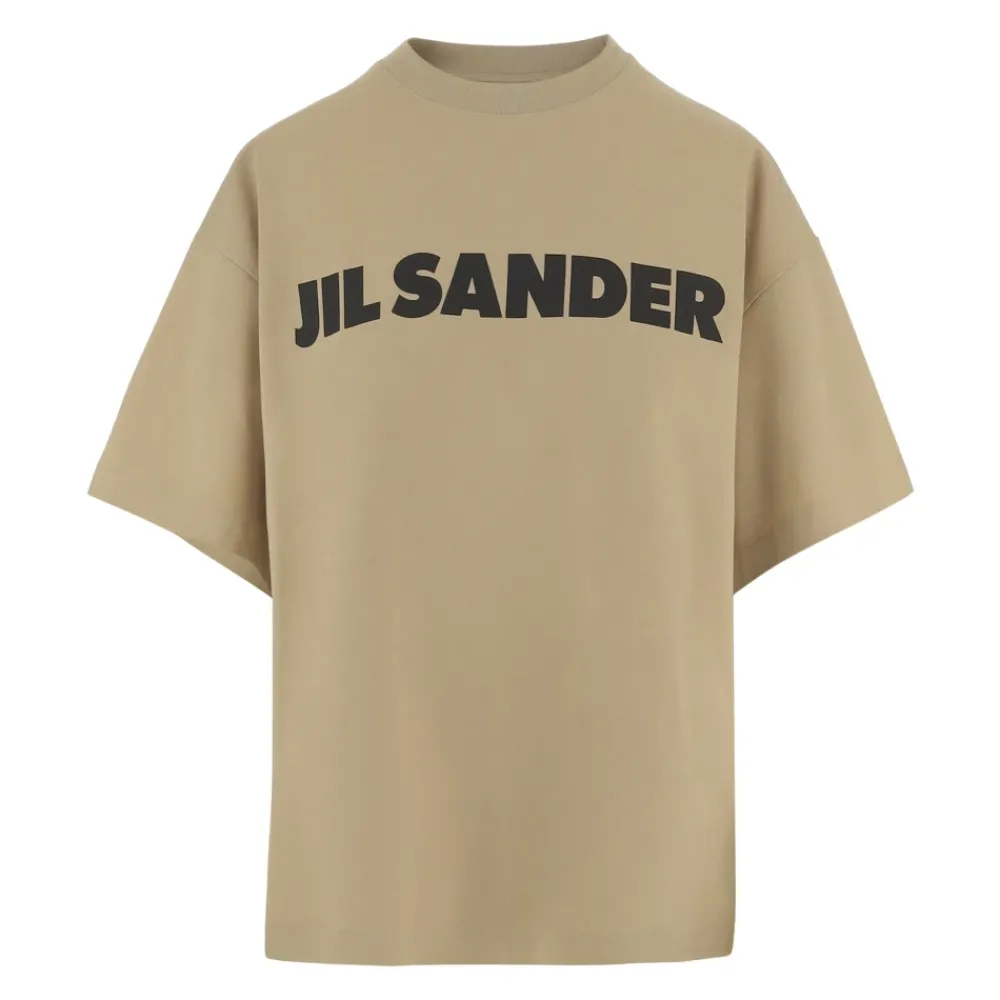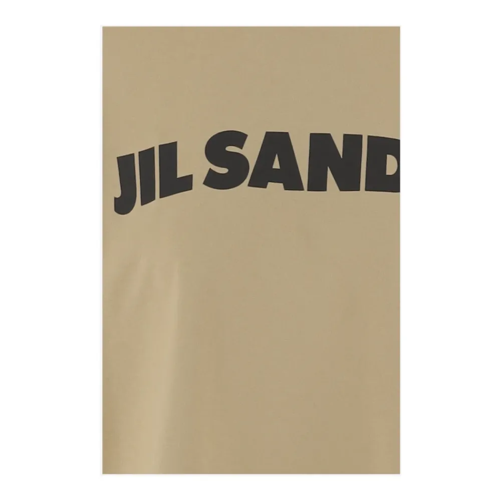 Jil Sander Katoenen T-shirt met logo is een minimalistische basisitem dat wordt gekenmerkt door een contrasterend logo aan de voorkant. Ontworpen voor dagelijkse laagjes en casual kleding. Belangrijkste kenmerken: Beige | Zwart | Katoen | Ronde hals | Korte mouwen | Contrasterende logoprint op de voorkant | Rechte zoom | Afmetingen & pasvorm: Model draagt maat S | Lengte: 175 cm | Borst: 86,5 cm | Taille: 65 cm | Heupen: 92 cm | Schouders: 40 cm | Samenstelling & verzorging: 100% katoen