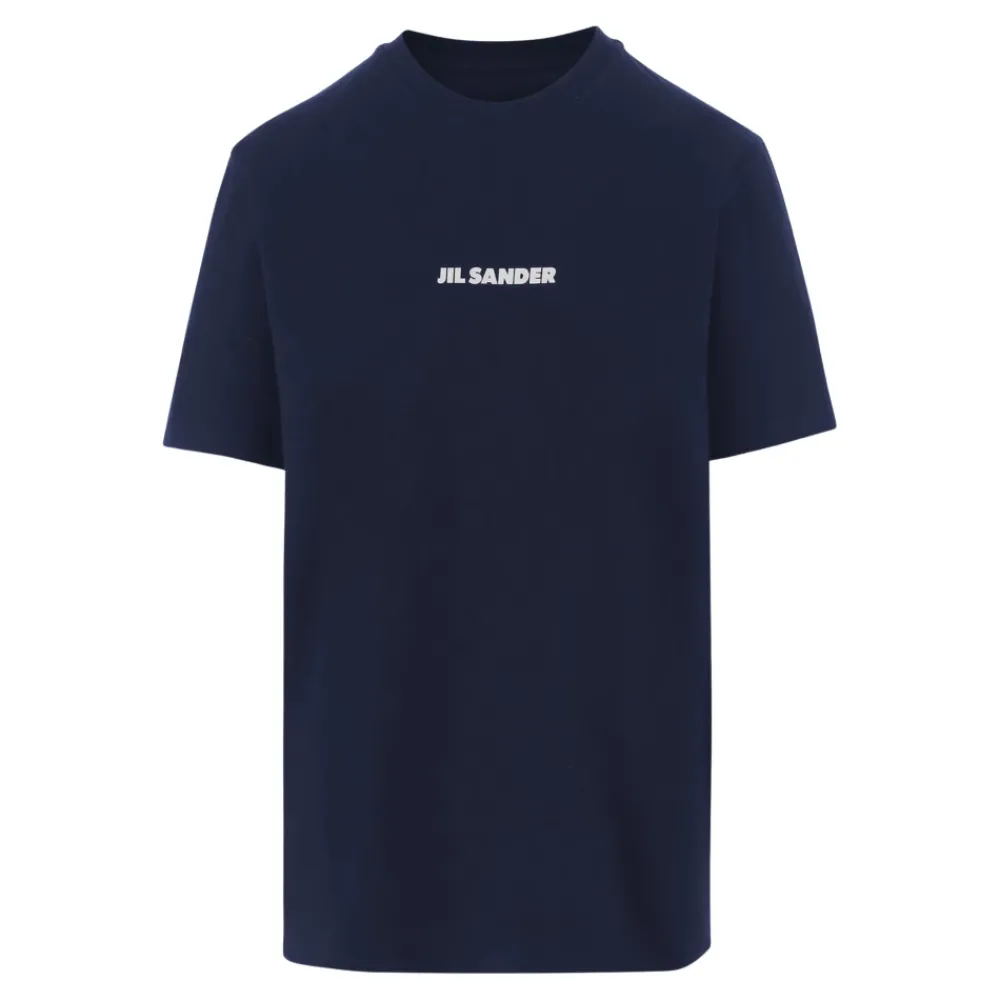 Jil Sander Katoenen T-shirt met Logo is een minimalistisch katoenen T-shirt met een logo-opdruk aan de voorkant en een strakke, rechte zoom. Het is een perfecte casual basisstuk of om onder jassen en vesten te dragen. Belangrijkste kenmerken: Marineblauw | Blauw | Blu | Katoen | Ronde hals | Korte mouwen | Logo-opdruk op de voorkant | Rechte zoom | Gemaakt in Italië | Afmetingen en pasvorm: Lengte model: 175 cm | Borstomvang model: 86,5 cm | Taille model: 65 cm | Heupomvang model: 92 cm | Schouderbreedte model: 40 cm | Model draagt maat S. | Samenstelling en onderhoud: 100% katoen