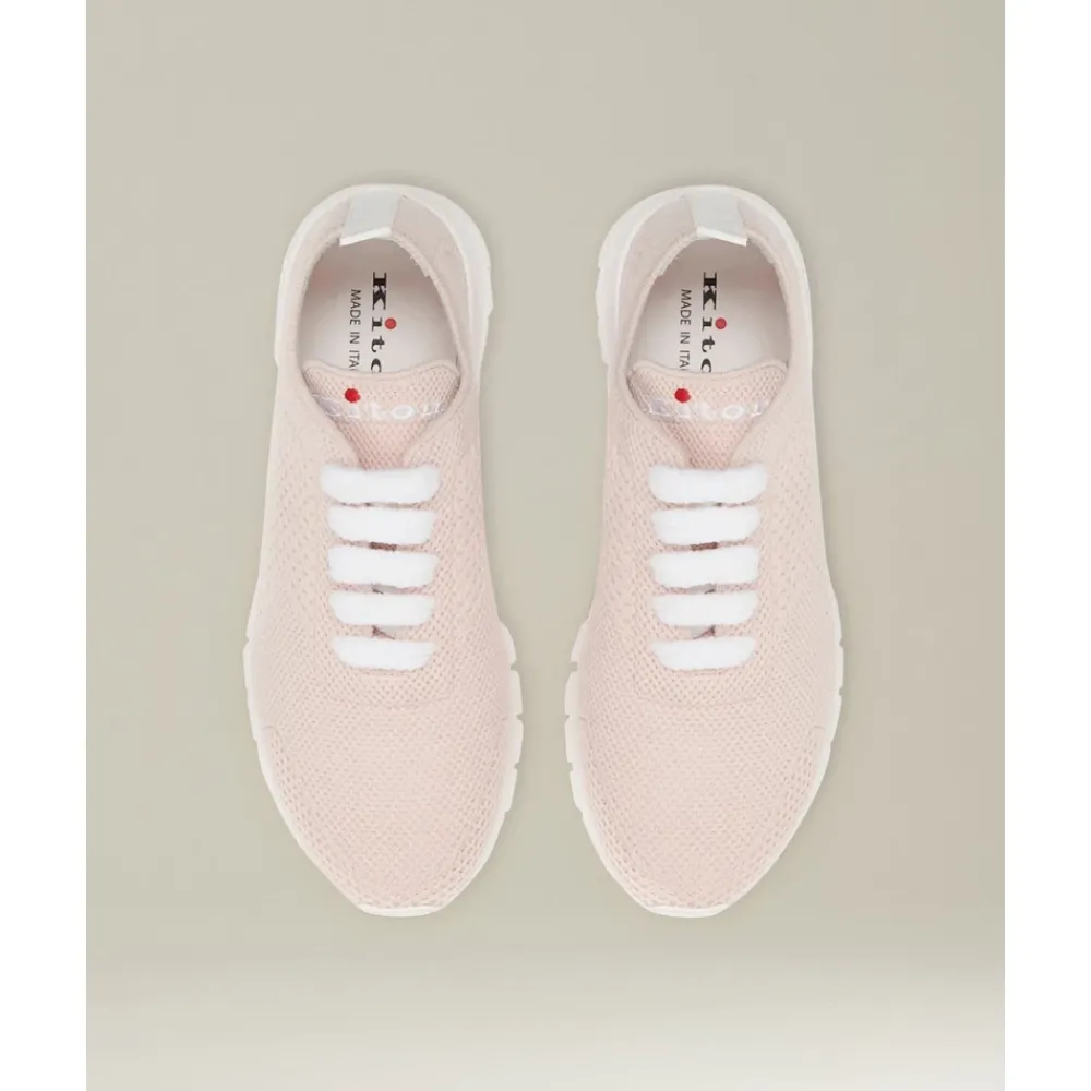 Kiton FIT Cashmere Knit Sneakers combineren een bovenwerk van kasjmierbreisel met een extra lichte, sportieve zool voor verfijnd dagelijks comfort. Het ontwerp benadrukt de tactiele textuur en het draagcomfort, waarbij luxe materialen worden gecombineerd met praktische sneakerkenmerken. Belangrijkste kenmerken: Roze | Kasjmier | Extra lichte, flexibele zool | Ergonomische binnenzool voor comfort | Elastische tong | Mesh/stretch veters | Vetersluiting | Eendelig bovenwerk van kasjmierbreisel | Grafische stikpatronen | Geborduurd Kiton-logo | Witte, lage zool | Afmetingen en pasvorm: Regular fit | Samenstelling en onderhoud: Bovenwerk: 100% kasjmier | Voering: 100% kalfsleer | Binnenzool: kalfsleer; elastodieen | Zool: 100% thermoplastisch rubber | Professionele stomerij aanbevolen. Vermijd langdurige blootstelling aan licht, warmte en vochtigheid. Vermijd contact met water, oliën, parfums en oplosmiddelen.