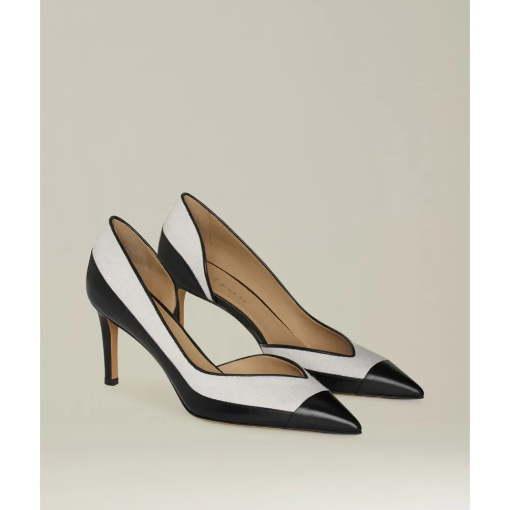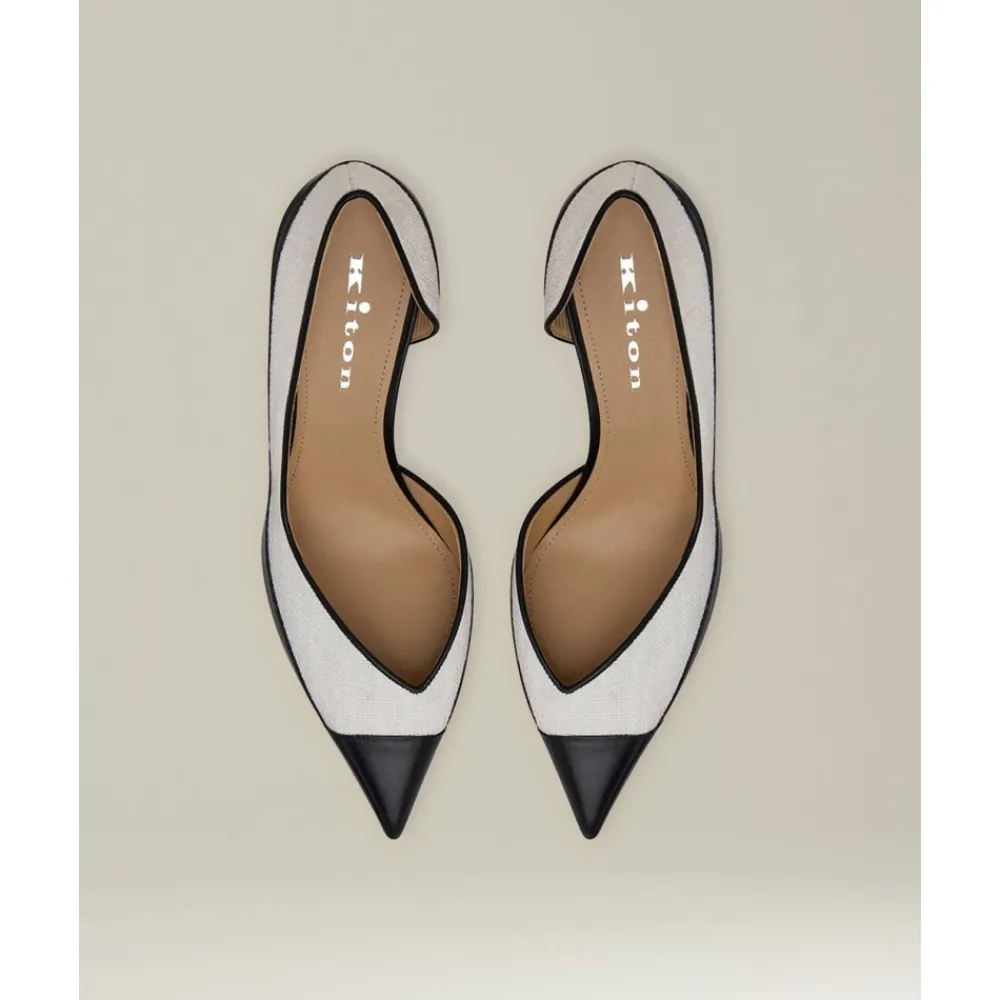 Kiton leren pumps met inzetstukken combineren zacht lamsleer met een contrasterend katoenen canvas inzetstuk voor een verfijnde, moderne look. De hak van 7 cm en de opening aan de zijkant creëren een gestroomlijnd silhouet dat geschikt is voor zowel overdag als ’s avonds. Belangrijkste kenmerken: Wit | Lamsleer | Hak van 7 cm | Contrasterend katoenen canvas inzetstuk | Opening aan de zijkant | Gestroomlijnd silhouet | Afmetingen & pasvorm: Normale pasvorm | Samenstelling & onderhoud: Bovenkant: Lamsleer | Inzetstuk: Katoenen canvas | Zool: 100% leer | Binnenzool: 100% geitenleer | Vermijd langdurige blootstelling aan licht, hitte en vochtigheid. Vermijd contact met water, olieachtige stoffen, make-up, parfums of oplosmiddelen. Gebruik voor het beste resultaat professionele leerverzorging.