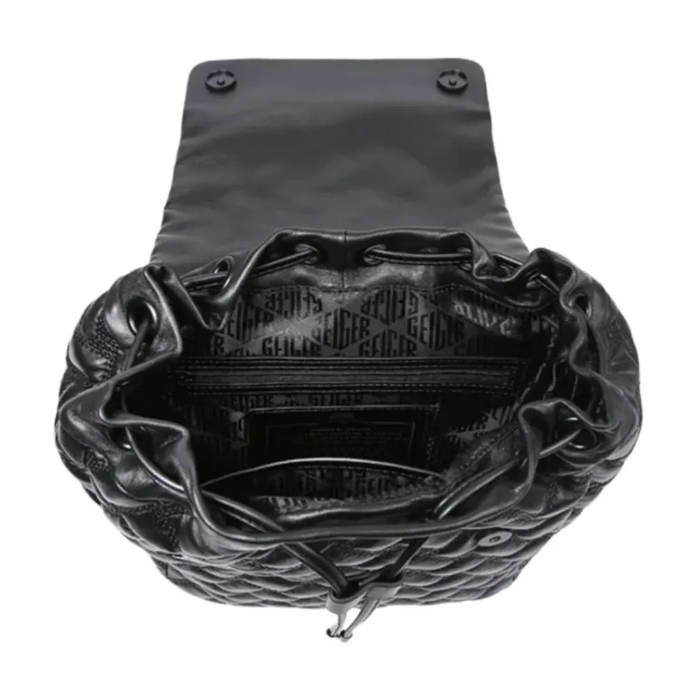 Upgrade je stijl met de Kurt Geiger Kensington Drench rugzak. Gemaakt van zacht lamsleer met drie rijen van gestructureerde patronen en een trekkoordsluiting. De voorflap heeft een metalen adelaarskop met kristallen.