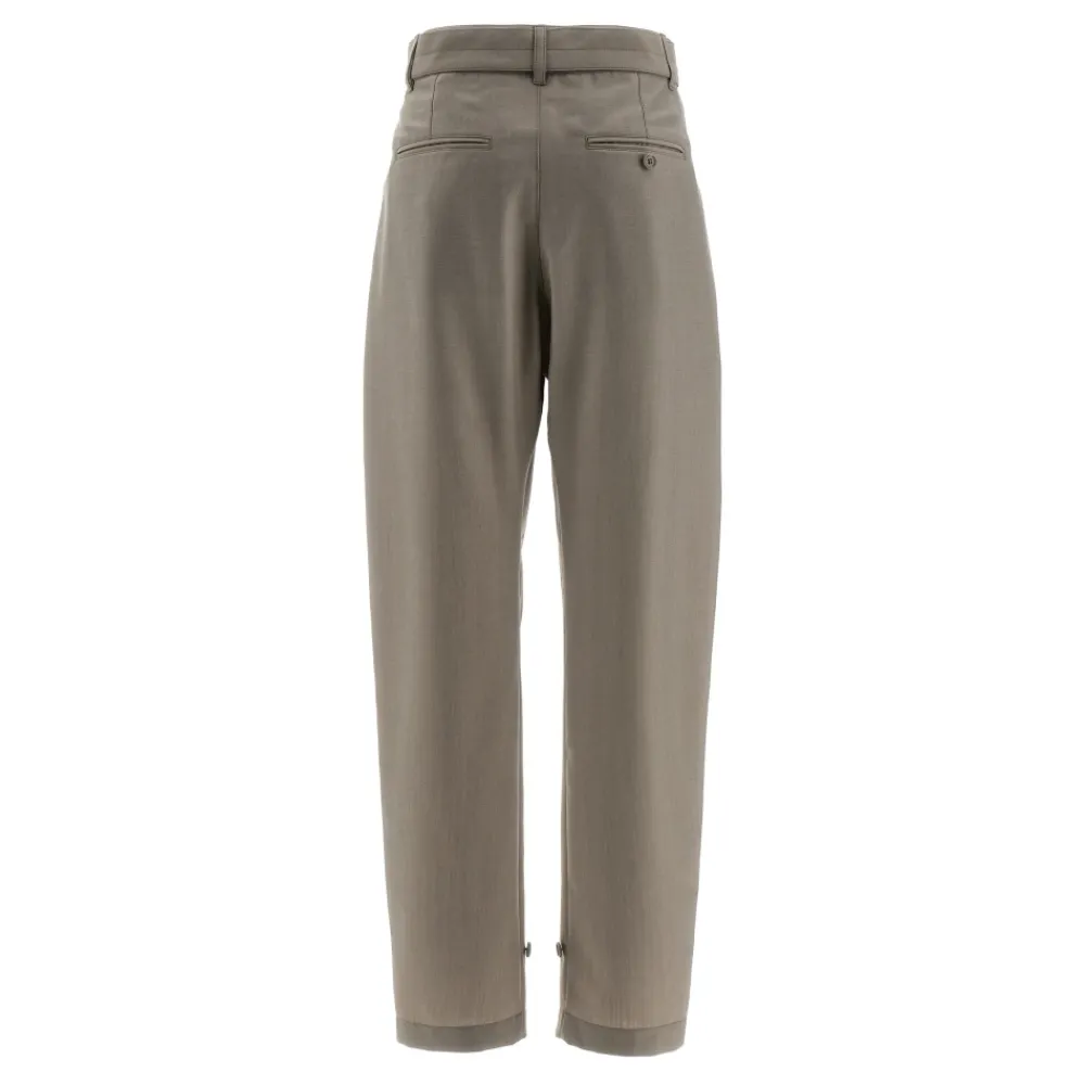 De Lemaire Curved Tailored Broek combineert een getailleerde structuur met een gebogen pijp voor een ontspannen, maar verfijnd silhouet. Ontworpen voor suiting rotation, geschikt voor zowel verfijnde alledaagse kleding als formele outfits. Belangrijkste kenmerken: Licht taupe | Wol | Verstelbare riem met gesp | Rits-, haak- en knoopsluiting | Zakken voor en achter | Verstelbare knoopsluitingen bij de manchetten | Gebogen pijp | Rechte snit | Paspelzakken achter | Italiaanse steekzakken | Afneembare bijpassende riem | Afmetingen en pasvorm: Oversized pasvorm | Rechte snit | Samenstelling en verzorging: 55% polyester | 45% wol | Hoofdzak: 100% katoen | Niet wassen. Niet bleken. Niet in de droogtrommel. Koel strijken. Professionele stomerij (zachte cyclus).