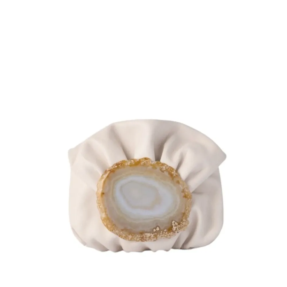 Middelgrote clutch met geplooide structuur, gemaakt van uiterst zacht en aangenaam Spaans extra fijn lamsnappa leer. Het heeft een ingebouwd natuurlijk agaatmineraalstuk op de sluiting, uniek en exclusief voor elke tas, geselecteerd door ons designteam, en daarom verschillend van die welke op de afbeeldingen op onze website kunnen verschijnen. We kunnen een voorbeeldfoto verstrekken voordat u online aankopen doet, indien gewenst. Met een afneembare ketting, 120 cm lang en zilver van kleur. De sluiting is magnetisch en heeft een kleine binnenzak. Afmetingen: 19 cm hoog, 20 cm breed, 7 cm diep. We bieden ook een agaatvervangingsdienst aan als ze beschadigd raken door een ongeval. U kunt informeren naar de prijs van deze reparatie door te bellen naar +34 91 112 35 36 of een e-mail te sturen naar [email protected]. Ontworpen en volledig vervaardigd in Spanje.