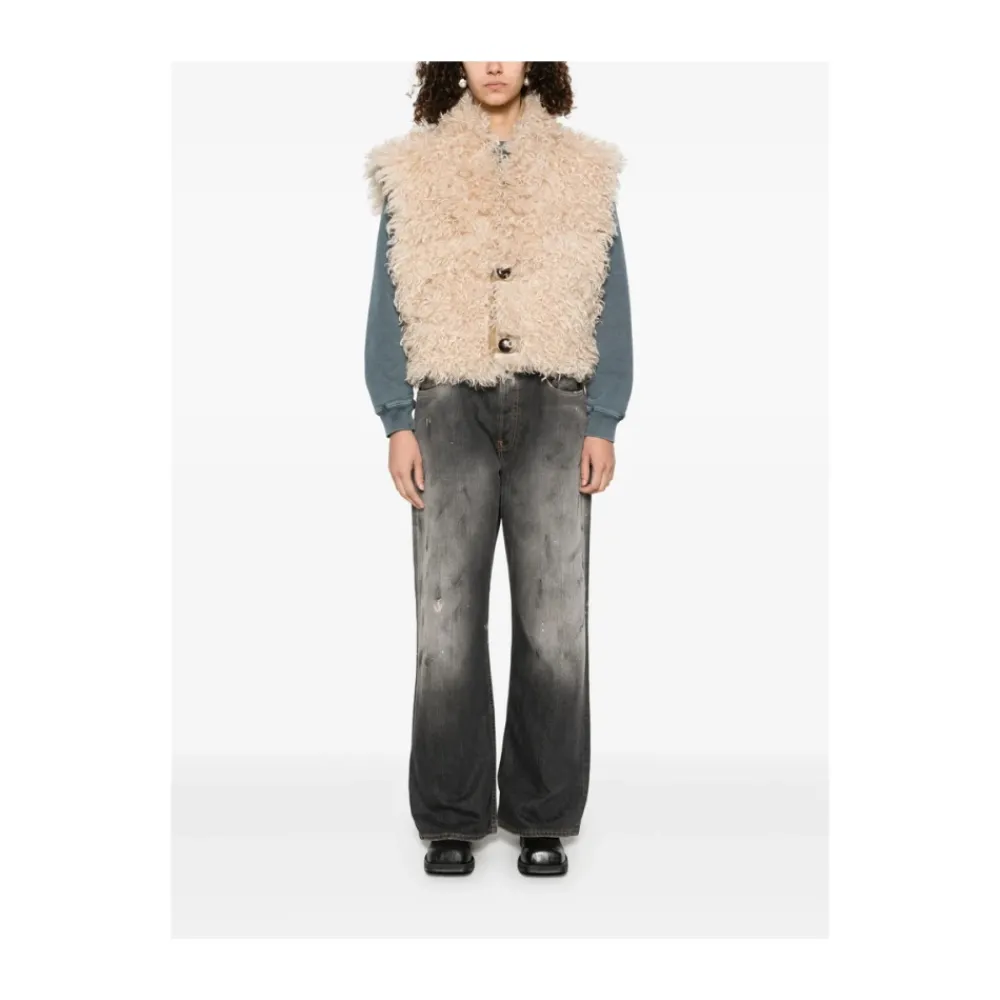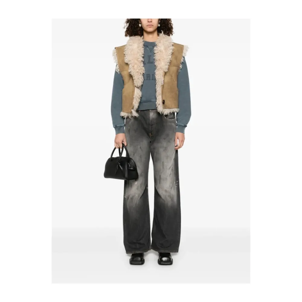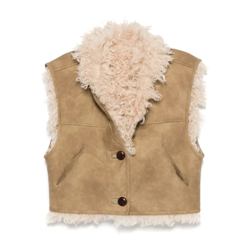 Upgrade je stijl met deze taupe vest van Marant étoile voor vrouwen. Voorzien van een knoopsluiting aan de voorkant, twee zijdelingse steekzakken en een omkeerbaar ontwerp. Gemaakt van 100,0% kalfsleer aan de buitenkant en 100,0% bontvoering.