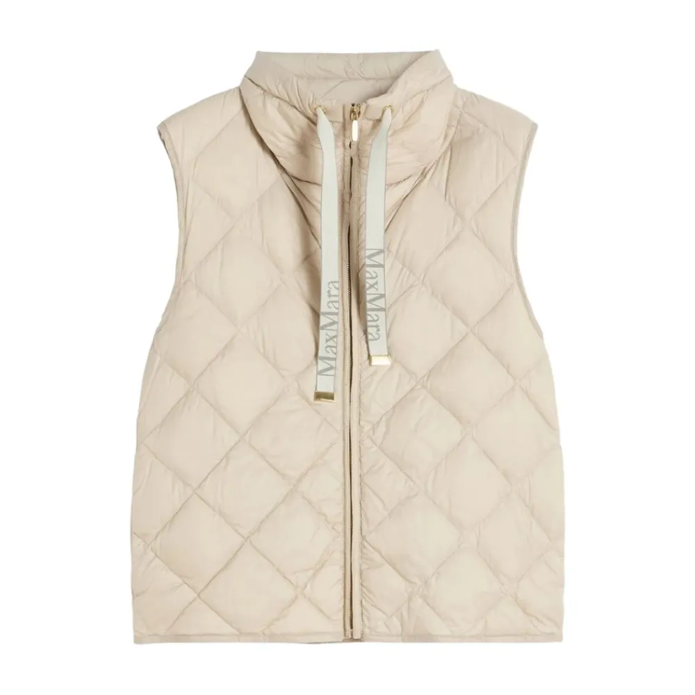 Max Mara The Cube Waistcoat is een ruitvormig doorgestikt, waterafstotend gilet, ontworpen voor lichtgewicht warmte en gemakkelijke layering. Het valt op door de hoge hals met trekkoord en logo-jacquard linten en isolerende ganzendonsvulling. Belangrijkste kenmerken: Beige | Neutrals | Polyamide | Waterafstotend | Isolerend (ganzendonsvulling) | Iridescent afwerking | Metalen ritssluiting | Insteekzakken aan de zijkant | Geleverd met Cube Bag stofhoes | Mouwloos | Hoge hals met trekkoord en jacquard logo linten | Ruitvormig doorgestikt motief | Logo detail | Afmetingen & pasvorm: Regular fit | Samenstelling & onderhoud: Stof: 100% polyamide | Voering: 100% polyamide | Vulling: virgin ganzendons | Opbergzak: 100% polyamide | Machinewas koud op een fijnwasprogramma; niet bleken; niet in de droogtrommel; hangend drogen in de schaduw; koel strijken; professionele stomerij (perchloorethyleen, mild proces). Was het kledingstuk vastgemaakt en binnenstebuiten gekeerd.