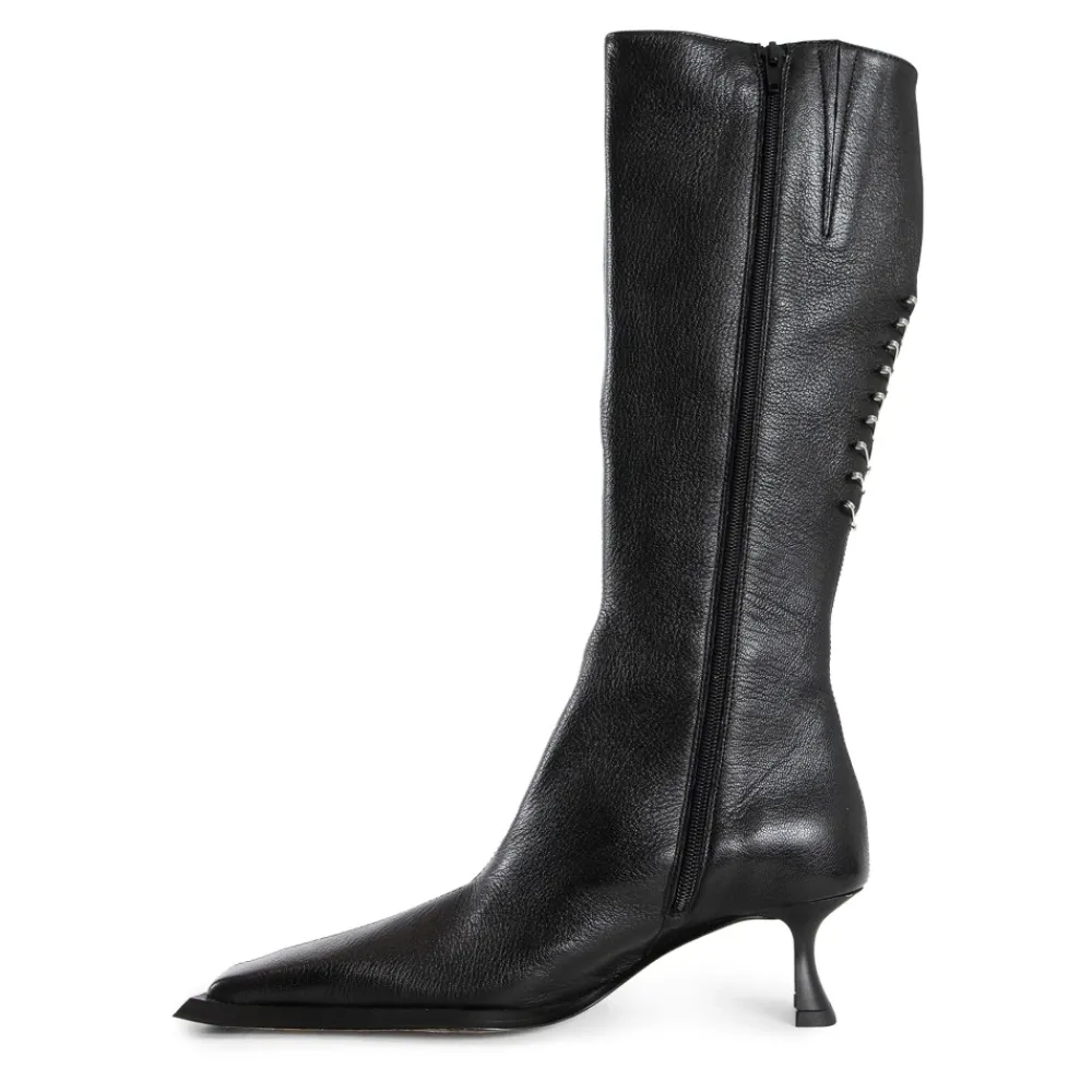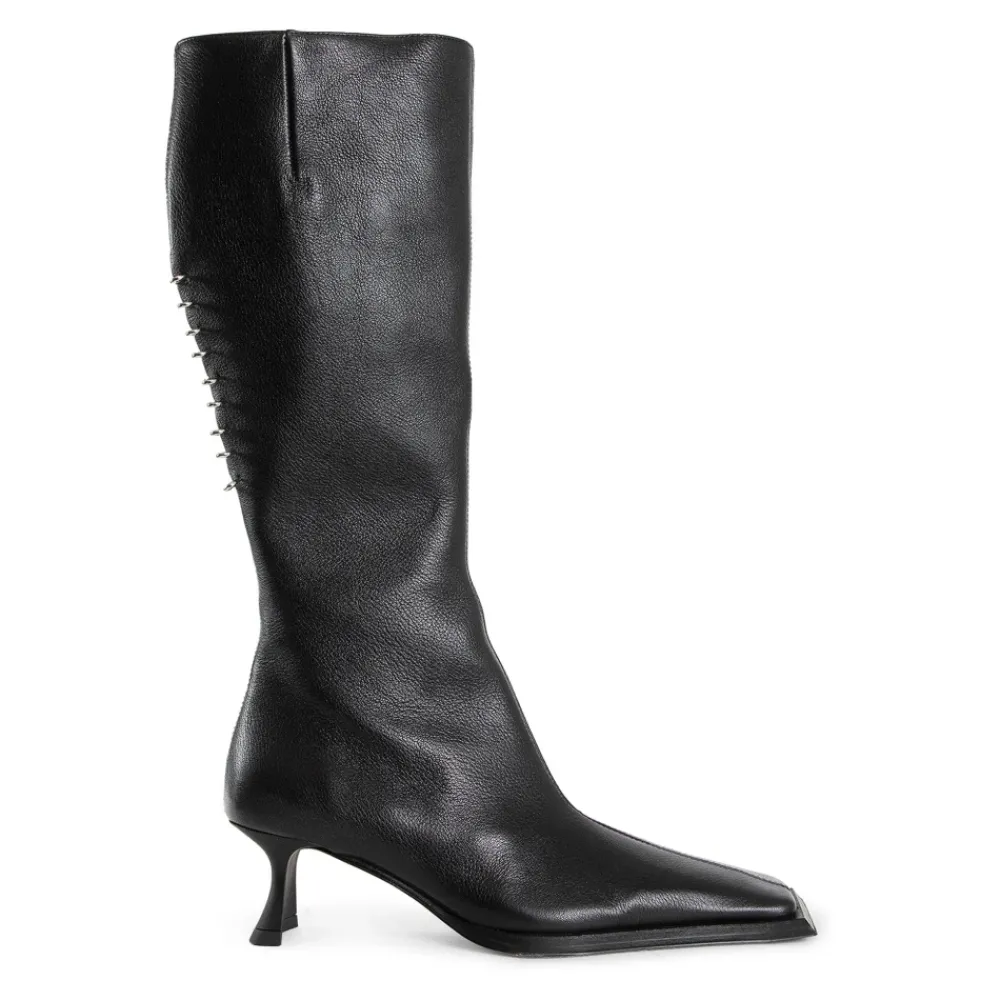 De Miista Bianca Tall Boots combineren een sculpturale, oversized snavelvormige zool met een vierkante neus voor een gedurfde, eigentijdse laars met hak. Ontworpen om hoogte en een opvallende textuur toe te voegen aan zowel casual als geklede looks. Belangrijkste kenmerken: Zwart | Leer | Ritssluiting aan de zijkant | Vierkante neus | Oversized snavelvormige zool | Pin-details aan de achterkant | Afmetingen & pasvorm: Hakhoogte: 6,5 cm | Samenstelling & verzorging: 100% geitenleer | Afnemen met een vochtige doek. Af en toe behandelen met een geschikte leerconditioner. Vermijd weken en langdurige blootstelling aan directe hitte.