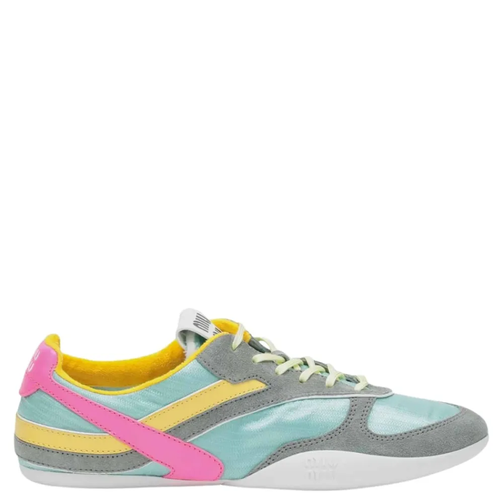 De Miu Miu Allacciate sneakers combineren een meerkleurig bovenwerk met vlakken met een klassiek silhouet met vetersluiting voor een alledaagse stijl en een betrouwbare streetwear-uitstraling. Belangrijkste kenmerken: Multicolor | Anice | Fuxia | Kalfsleer | Vetersluiting | Platte rubberen zool | Paneeldesign | Hiel met logo | Samenstelling & verzorging: Kalfsleer | Polyamide | Rubber
