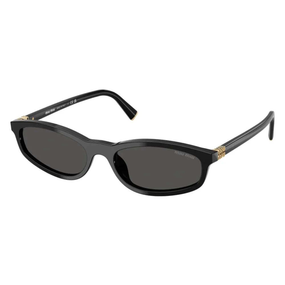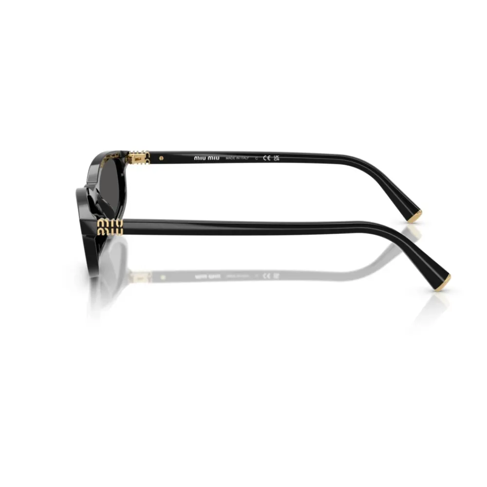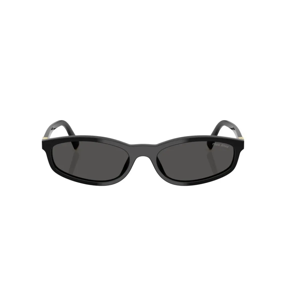 Upgrade je stijl met deze zwarte Miu Miu ‘Regard’ rechthoekige zonnebril. Met een acetaat frame, dunne randen en donkergrijze lenzen, tonen deze zonnebril ook een goudkleurig logo aan de zijkanten. Met 100% UVA/UVB-bescherming zijn ze zowel stijlvol als functioneel. Lensbreedte: 54 mm; Neusbruglengte: 17 mm; Tempellengte: 140 mm.