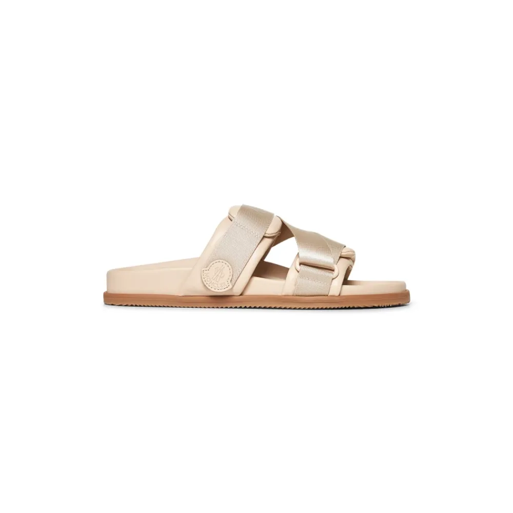 Upgrade je zomerse stijl met deze Moncler sliders voor vrouwen. Gemaakt in Italië van 100% leer, deze roze sliders hebben een dubbele nappa leren klittenband, verstelbare webbing banden met siliconen logo detail en jacquard Moncler belettering. De leren voering, gevormd voetbed en contrasterende rubberen zool zorgen voor zowel comfort als stijl. Zoolhoogte: 0,9 cm.