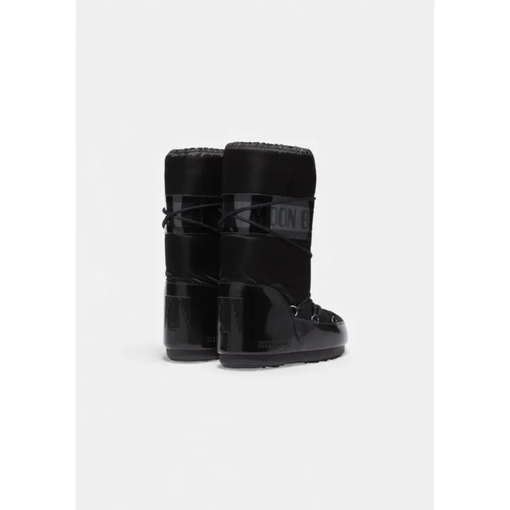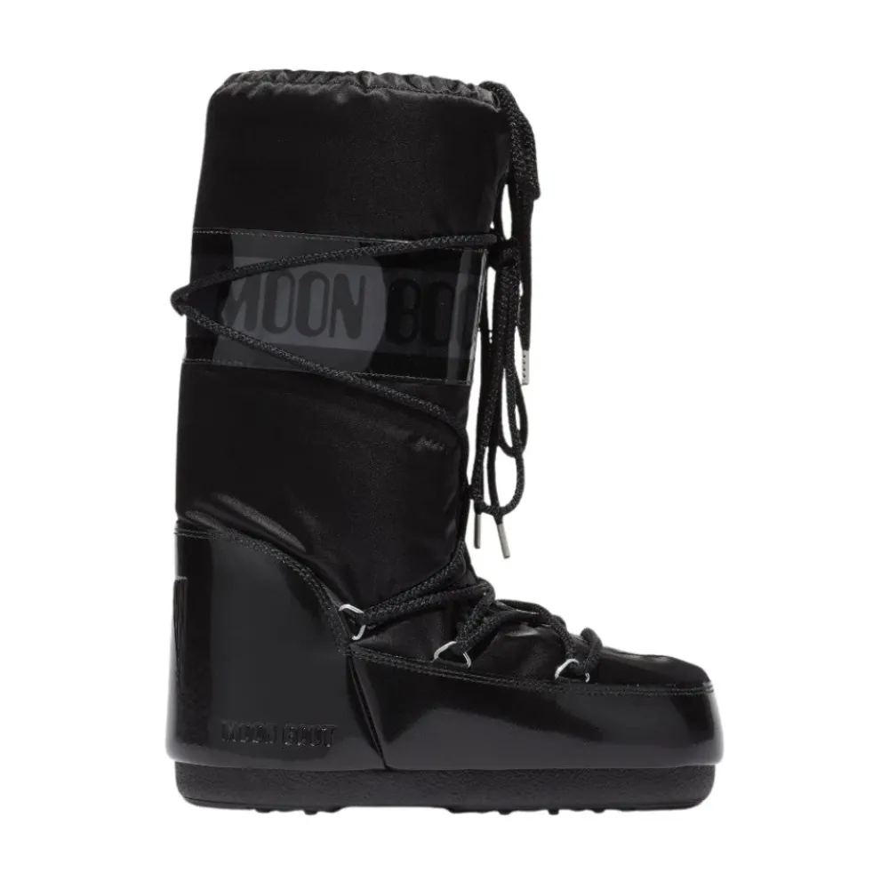 Moon Boot Icon Glance is een winterlaars met een satijnen afwerking die een geïsoleerde multisize schuimvoering combineert met een waterafstotend bovenwerk voor koude, natte omstandigheden. Ontworpen voor après-ski en casual winterkleding, combineert het een gripvaste zool met verstelbare trekkoorden aan de bovenkant voor een veilige pasvorm. Belangrijkste kenmerken: Zwart | Nylon | 100% waterafstotend | Geïsoleerde voering voor warmte | Thermoplastisch (TR) tussenzool | Antislip rubberen buitenzool | Instapmodel | Verstelbaar trekkoord aan de schacht | Ambidexter constructie (verwisselbaar links/rechts) | Multisize schuimvoering die zich aanpast aan de voet | Satijnen (raso) bovenkant | Logoband aan de schacht | PVC hiel- en sierdetails | Zilverkleurige metalen oogjes | Decoratieve buisvormige gekruiste veters | Afmetingen & pasvorm: Lengte binnenzool: 23,5 cm (gegeven voor maat 39/41). | Zoolhoogte: 2 cm. | Hoogte binnenzool: 6 cm. | Totale laarshoogte: 33 cm. | Multisize schuimvoering die zich aanpast aan de voetvorm. | Aanbevolen om een maat groter te nemen (multitaglia). | Instapconstructie; ambidexter ontwerp (geen onderscheid tussen links/rechts). | Samenstelling & verzorging: 35% nylon, 35% polyester, 30% PVC
