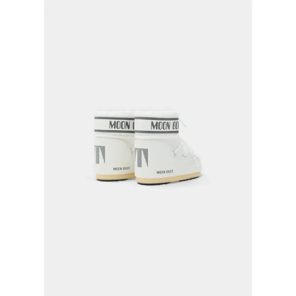 Moon Boot Icon Low Nylon Boots zijn een compacte, geïsoleerde variant op het klassieke Moon Boot silhouet, ontworpen voor waterbestendige bescherming en stabiele grip in winterse omstandigheden en après-ski. Belangrijkste kenmerken: Wit | Bianco | Nylon | 100% waterafstotend | Thermoplastische tussenzool | Antislip rubberen profiel | Ambidextere constructie | Gekruiste buisvormige veters | Verstelbaar trekkoord aan de bovenkant | Multisize schuimvoering voor adaptieve pasvorm | Logoband op de schacht | PVC hielstuk en afwerking | Zilverkleurige metalen oogjes | Afmetingen en pasvorm: Slanke pasvorm – overweeg een maat groter te nemen (schuimvoering past zich aan na het dragen) | Samenstelling en verzorging: 70% nylon | 30% PVC | Verwijder vuil met een zachte borstel. Veeg vlekken weg met een vochtige doek en een mild reinigingsmiddel. Reinig de tussenzool en buitenzool met een zachte borstel en een mild reinigingsmiddel. Laat aan de lucht drogen op kamertemperatuur. Gebruik geen waterdichtmakende sprays.