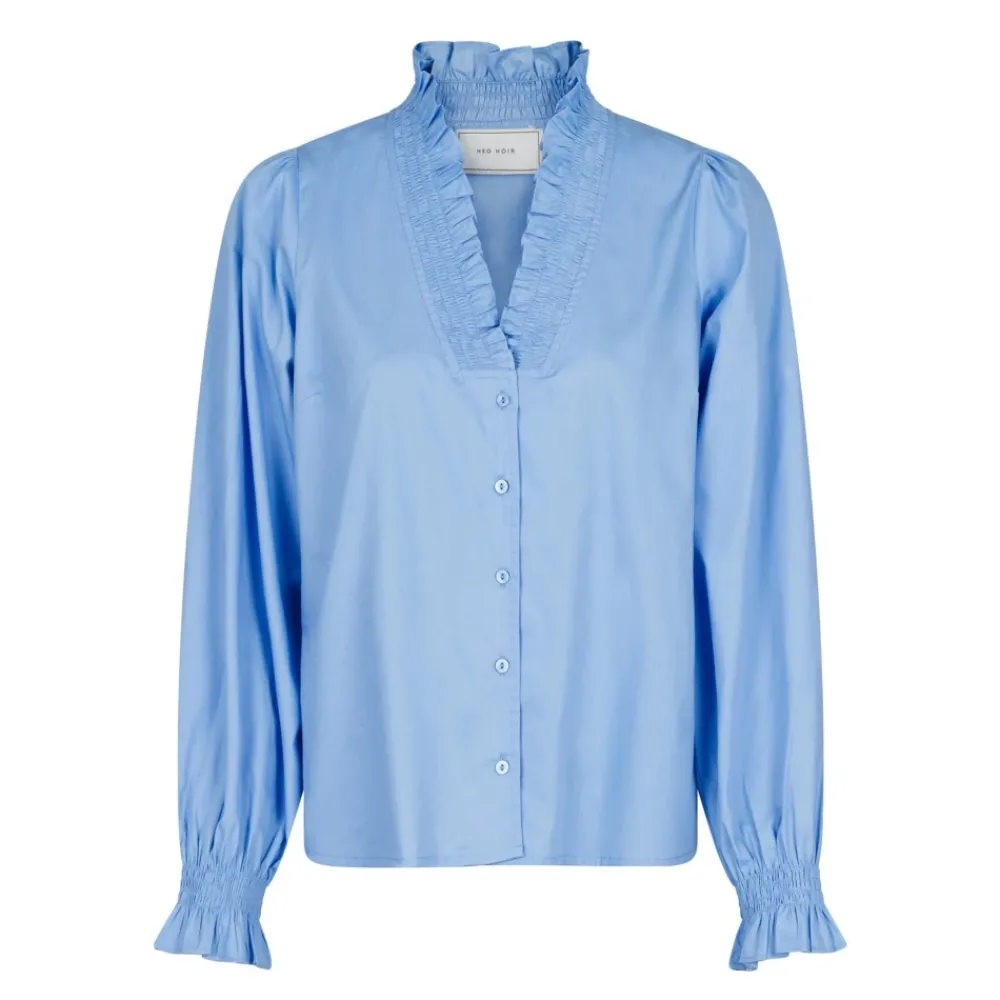De Neo Noir Brielle Solid Shirt combineert een getailleerd silhouet met smock- en ruchesdetails voor veelzijdige gelegenheden, van overdag tot ’s avonds. Het ontwerp voegt vrouwelijke textuur toe, terwijl de vorm schoon en draagbaar blijft. Belangrijkste kenmerken: Blauw | Hemelsblauw | Katoen | Knoopsluiting | Elastische manchetten | Smockdetails | V-hals met rucheskraag | Gepofte lange mouwen | Decoratieve stiksels | Afmetingen & pasvorm: Regular fit | Samenstelling & onderhoud: 65% katoen | 32% nylon | 3% elastaan | Machinewas koud (30°C); niet bleken; strijken op lage temperatuur.