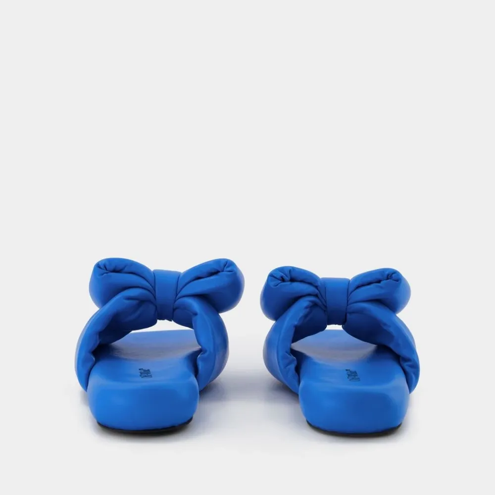 Verhoog je stijl met de Bow Padded Slides van Off White, vervaardigd uit luxueus nappa kalfsleer. Deze blauwe sliders bieden een chique en comfortabele optie voor elke garderobe. Belangrijkste kenmerken: Blauw | Nappa Kalfsleer | Slip-on sluiting | Rubberen zool | Bow detail | Ronde neus | Afmetingen en pasvorm: Valt normaal qua maat | Verkrijgbaar in Europese maten | Samenstelling en onderhoud: 100% Kalfsleer | Niet gespecificeerd