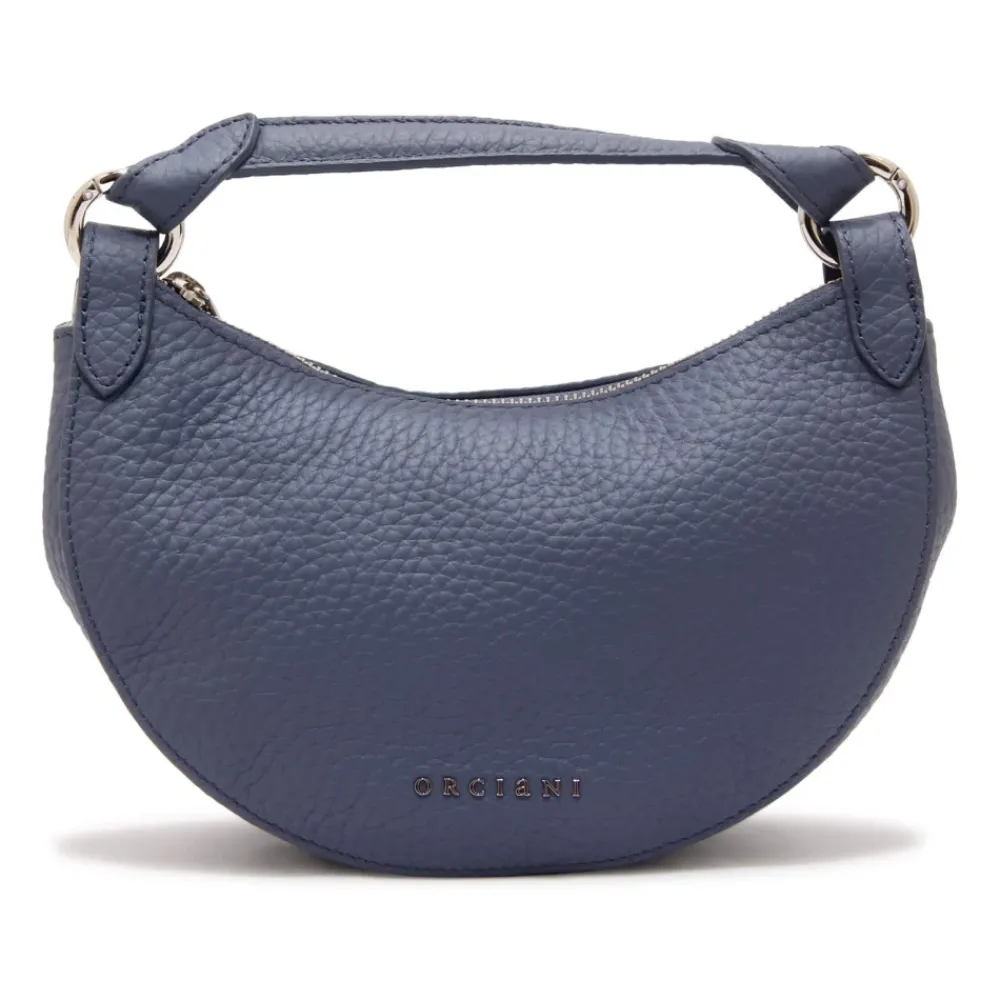 De Orciani Mini Dumpling Bag combineert Italiaans vakmanschap met een compact, handsfree ontwerp. De pebble-textured lederen body en de afneembare schouderriem maken het een praktische keuze voor dagelijks gebruik. Belangrijkste kenmerken: Blue | Blu | Leer | Afneembare schouderriem | Dumpling silhouet | Pebbled lederen afwerking | Compact mini formaat | Afmetingen & pasvorm: 24 x 16 x 10 cm | Samenstelling & verzorging: Leer