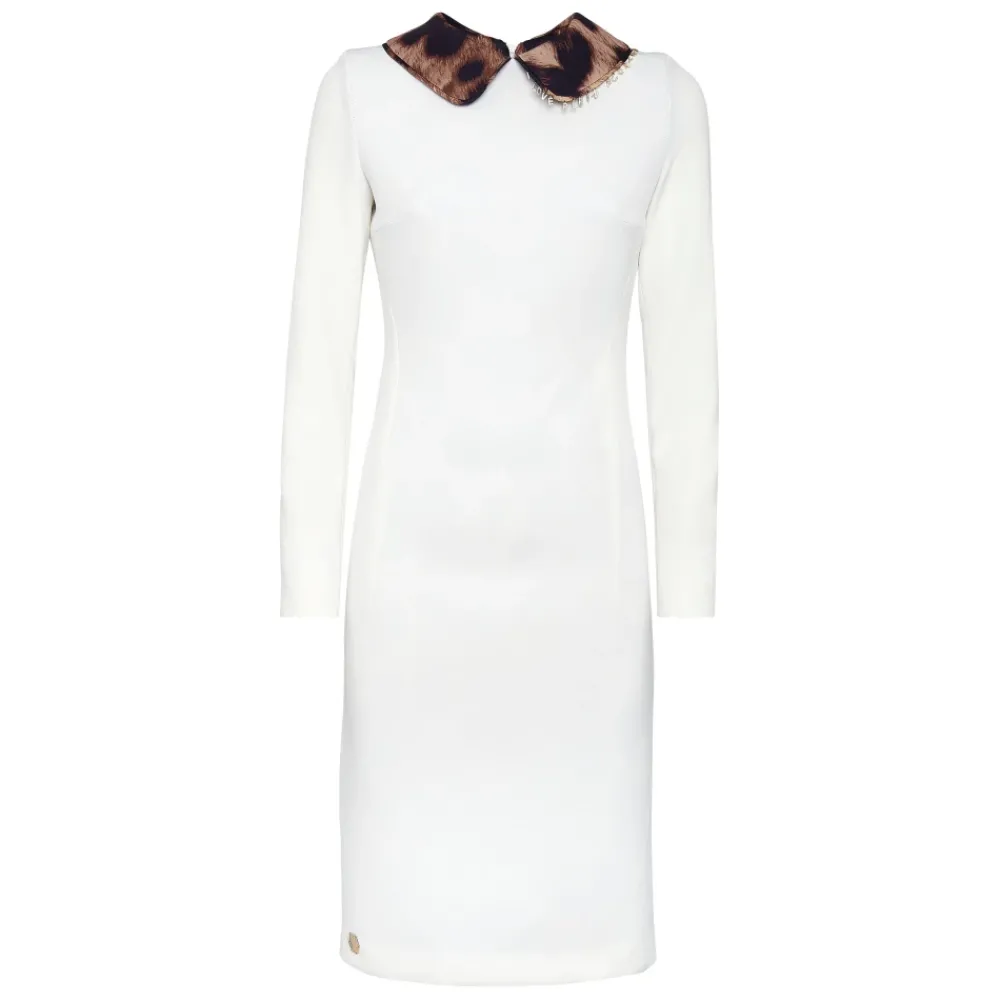 Philipp Plein Long Dress LEOPARD is een nauwsluitende kokerjurk, ontworpen voor een verzorgde dag- of avondlook. Het heeft een met strass steentjes afgezet kraag die een gestroomlijnd silhouet versterkt. Belangrijkste kenmerken: Wit | Crème | Polyester | Stretchstof | Onzichtbare ritssluiting middenachter | Koker silhouet | Gevlekte stofdetails | Strass rand op kraag | Afmetingen & pasvorm: Nauwsluitend | Samenstelling & onderhoud: Polyester